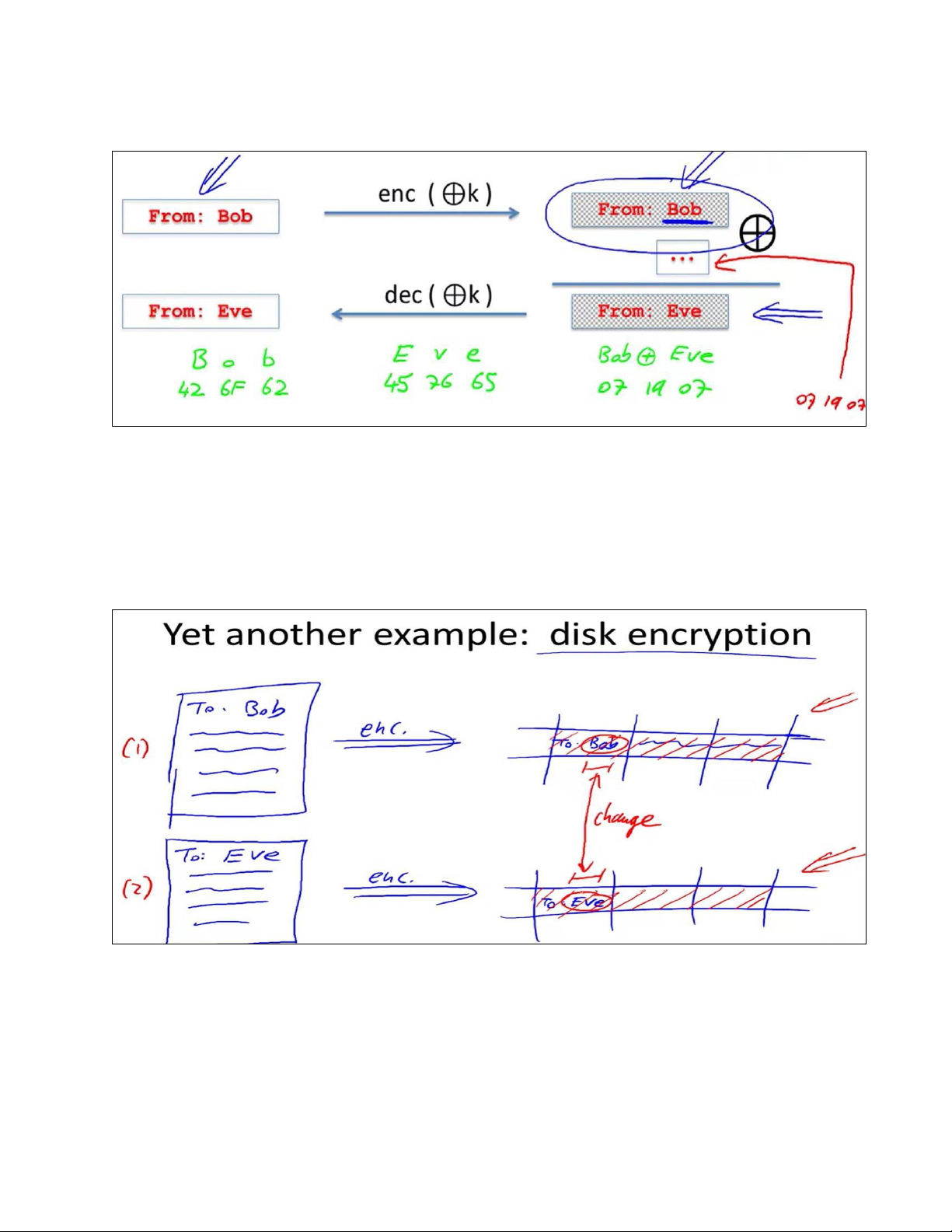 Ví dụ, với bản rõ m, bản mã sau ó sẽ là m XOR k. Bây giờ kẻ tấn công chặn ược