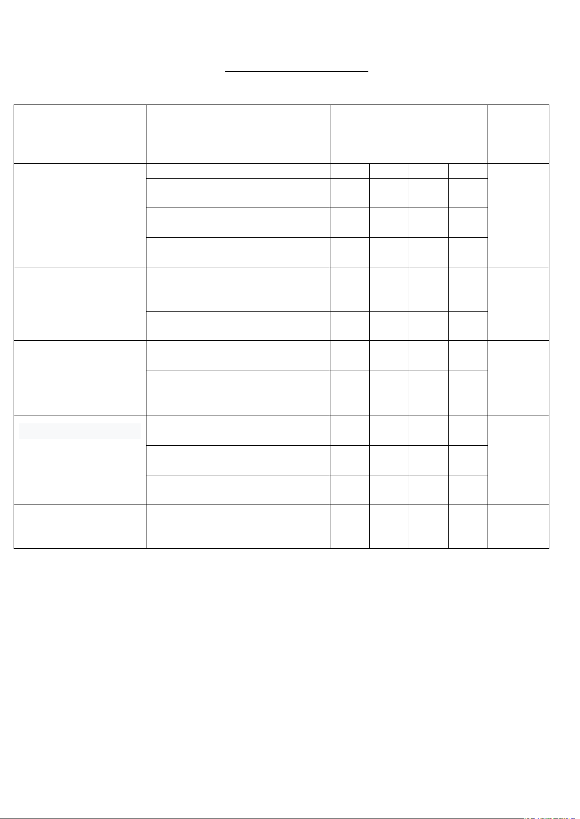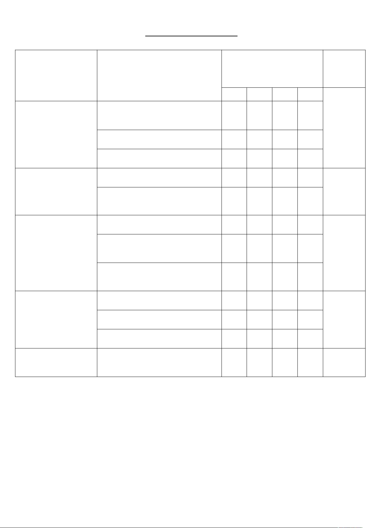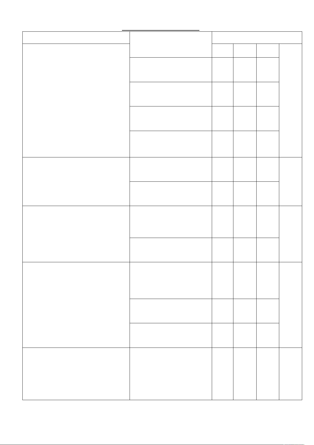 LISTENING Topics School, Animals, A shopping trip, Travel | M1 | M2 | M3 | M4 | 10 câu 2,5 điểm 25 % | |