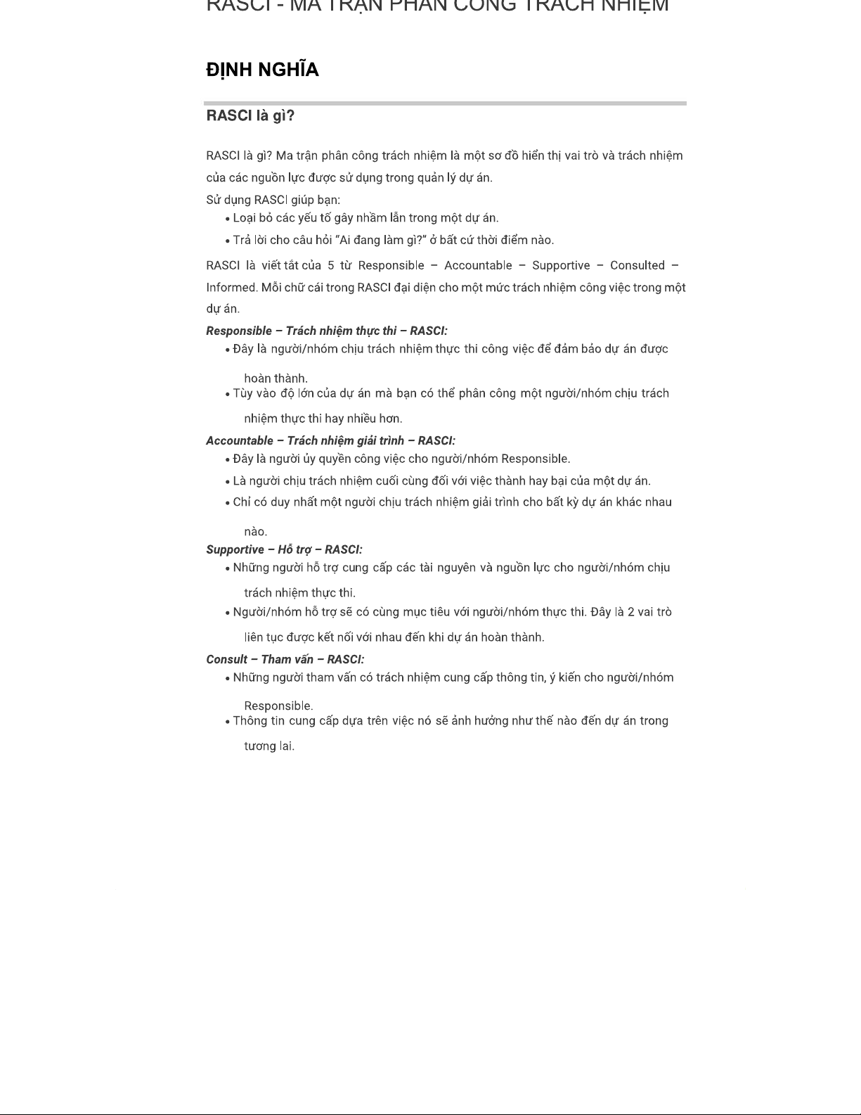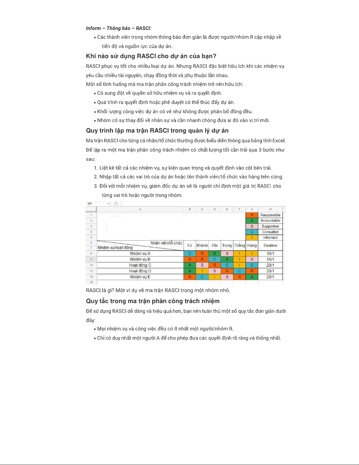 Ma Trận RASCI Phân Công Trách Nhiệm trong Quản Lý Dự Án