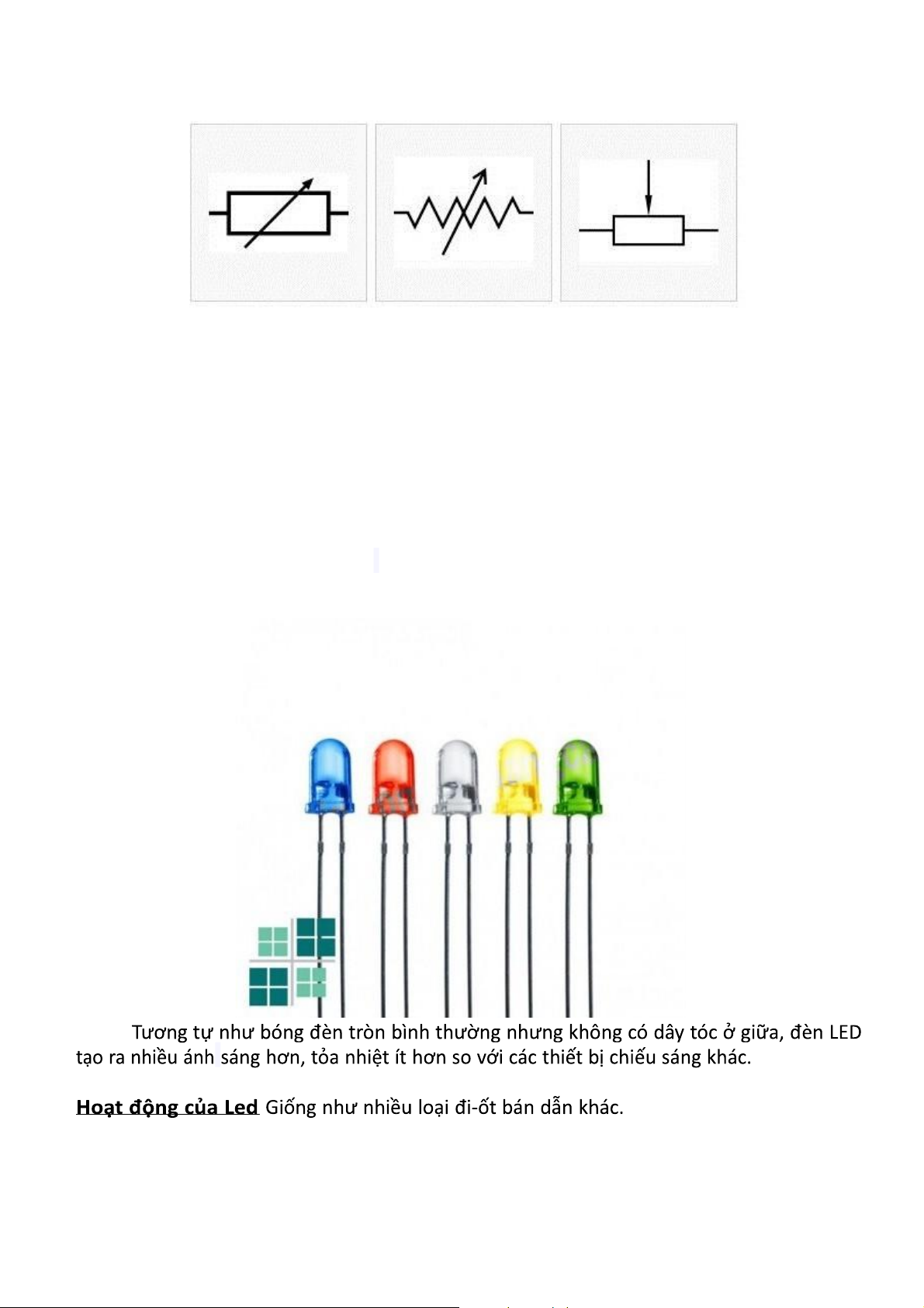 Loại biến trở chúng ta hay gặp nhất là loại biến trở chúng ta có thể thay đổi bằng cách xoay vít. e) Đèn led: