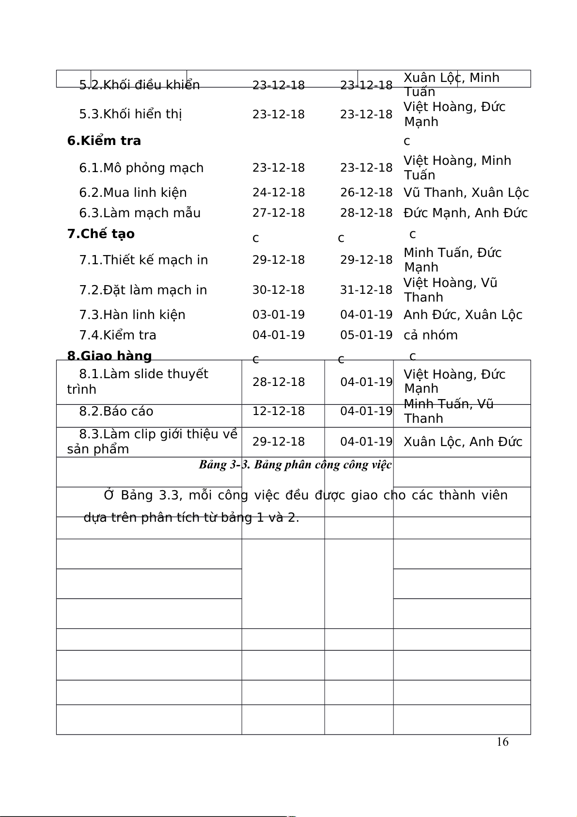 04-01-19 Anh Đức, Xuân Lộc 7.4.Kiểm tra 04-01-19 05-01-19 cả nhóm 8.Giao hàng c c c 8.1.Làm slide thuyết Việt Hoàng, Đức trình 28-12-18 04-01-19 Mạnh 8.2.Báo cáo Minh Tuấn, Vũ 12-12-18 04-01-19 Thanh