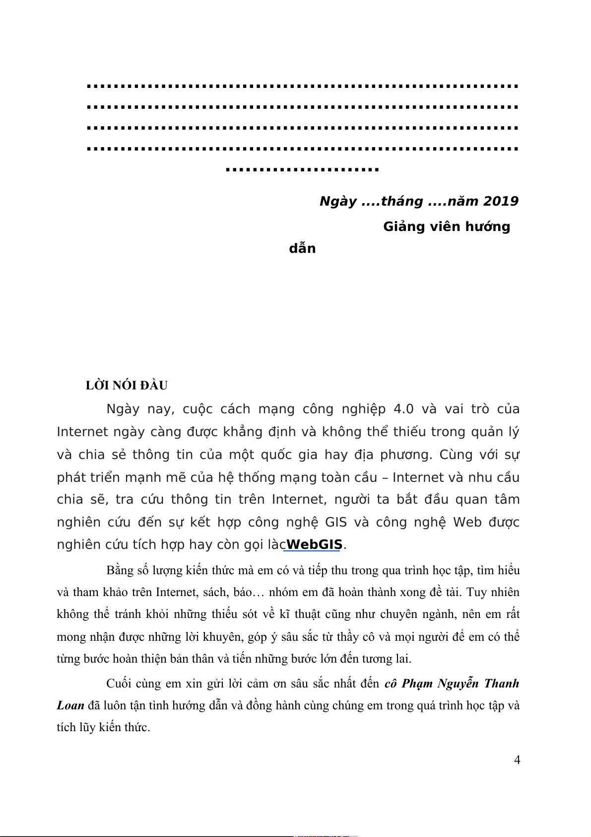 Ngày ....tháng ....năm 2019 Giảng viên hướng dẫn LỜI NÓI ĐẦU