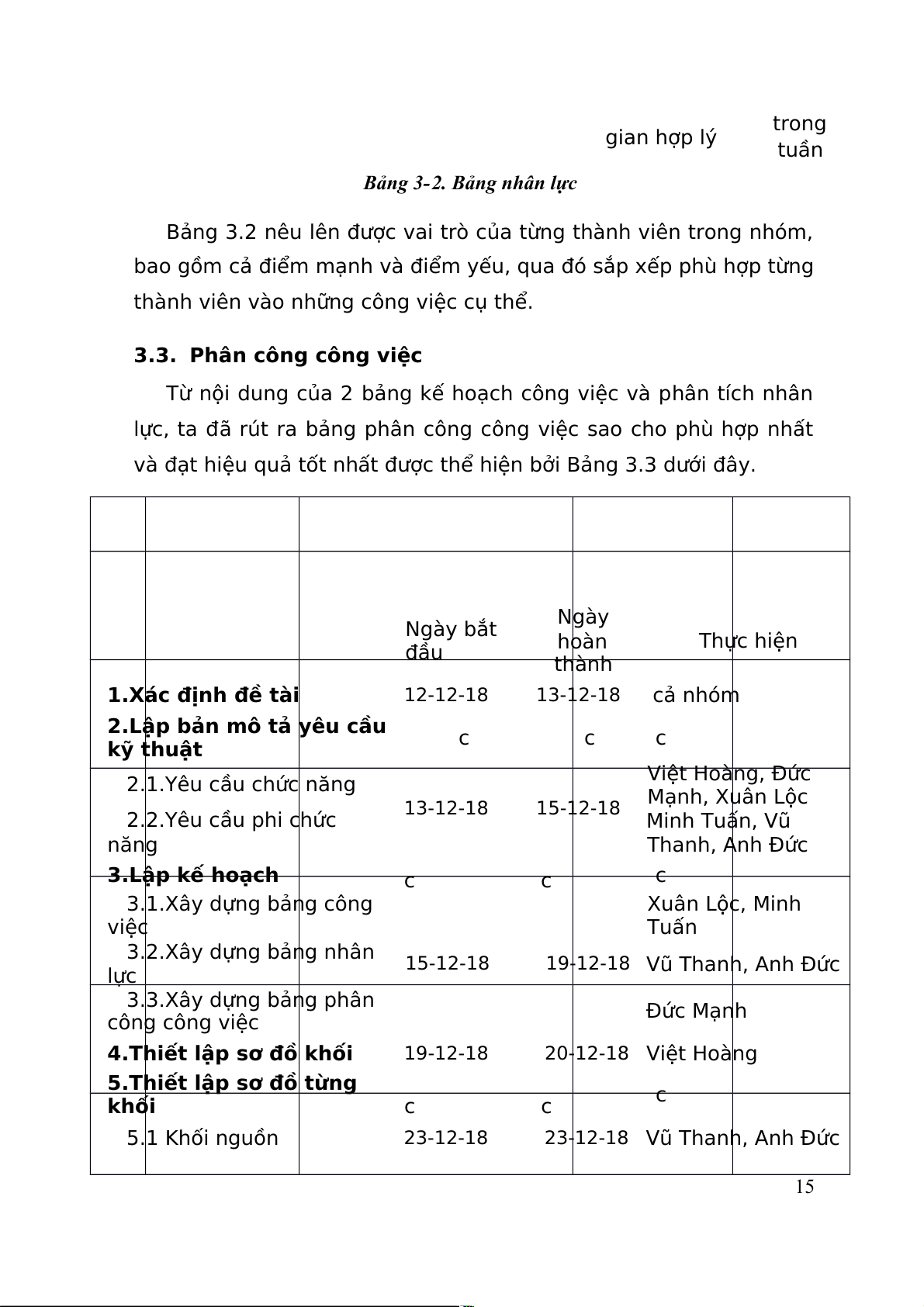 3.2.Xây dựng bảng nhân 15-12-18 19-12-18 lực Vũ Thanh, Anh Đức 3.3.Xây dựng bảng phân công công việc Đức Mạnh