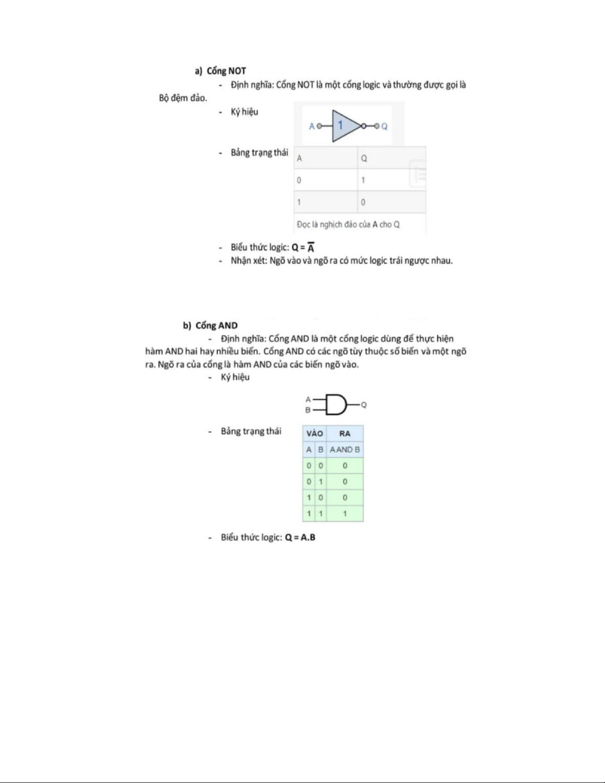 1.2 Các cổng logic cơ bản và thuật toán logic
