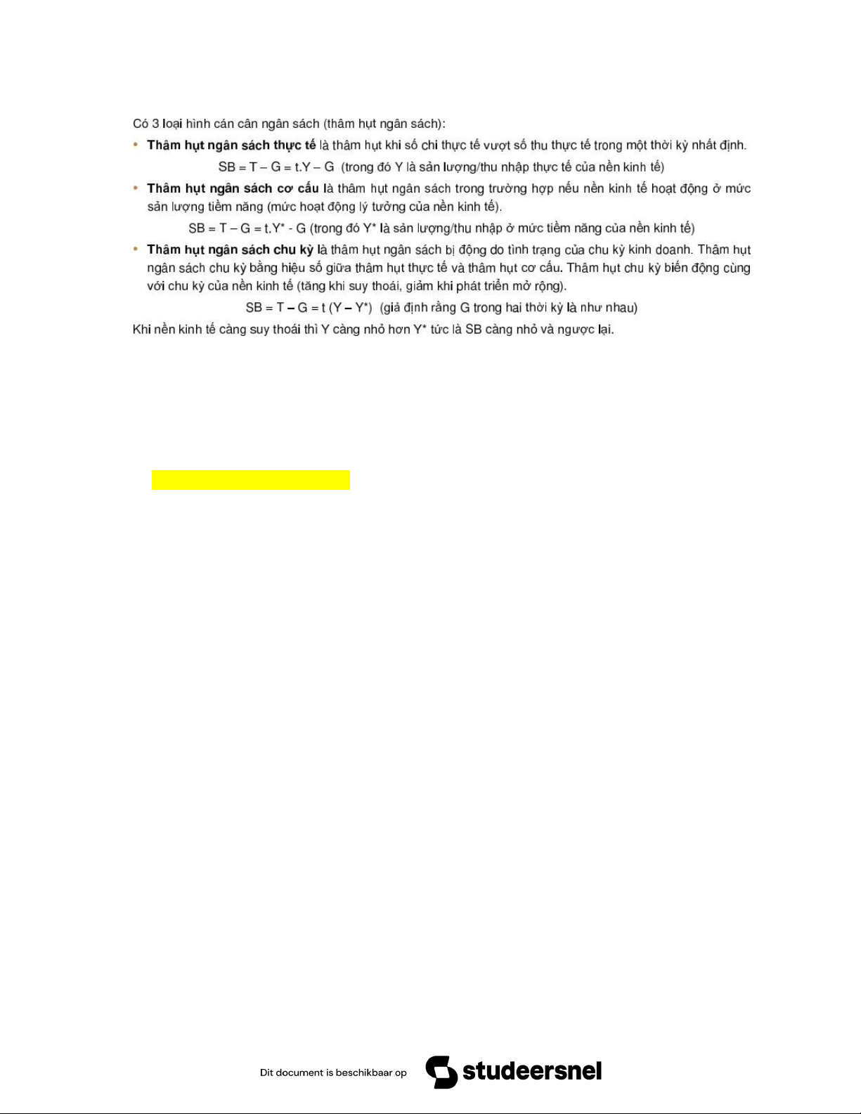 Các trạng thái của cán cân ngân sách : 3 trạng thái Cb: ccns=0 Thâm hụt: ccns <0 Thặng du : CCNS>0 6.