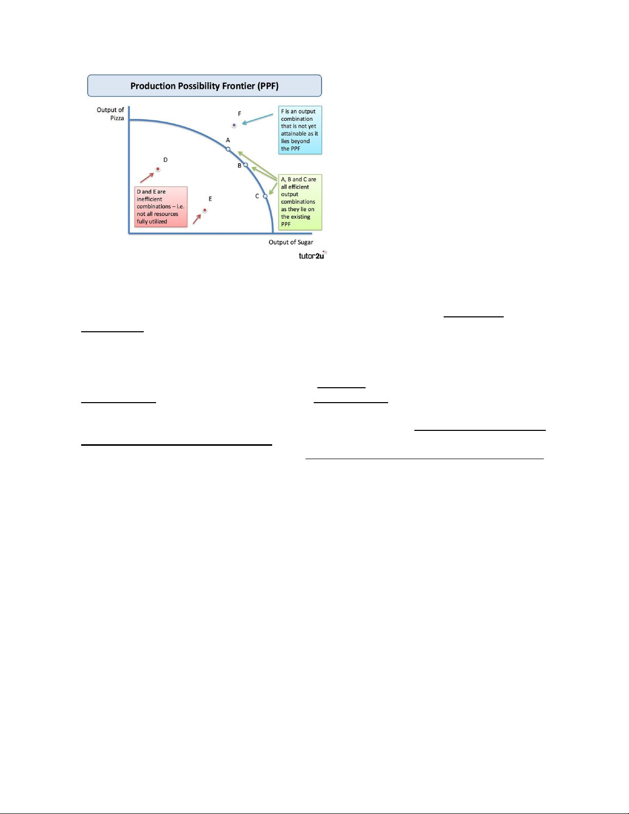 2 goods, 1 economy produces, given resources and technology Meaning of PPF: