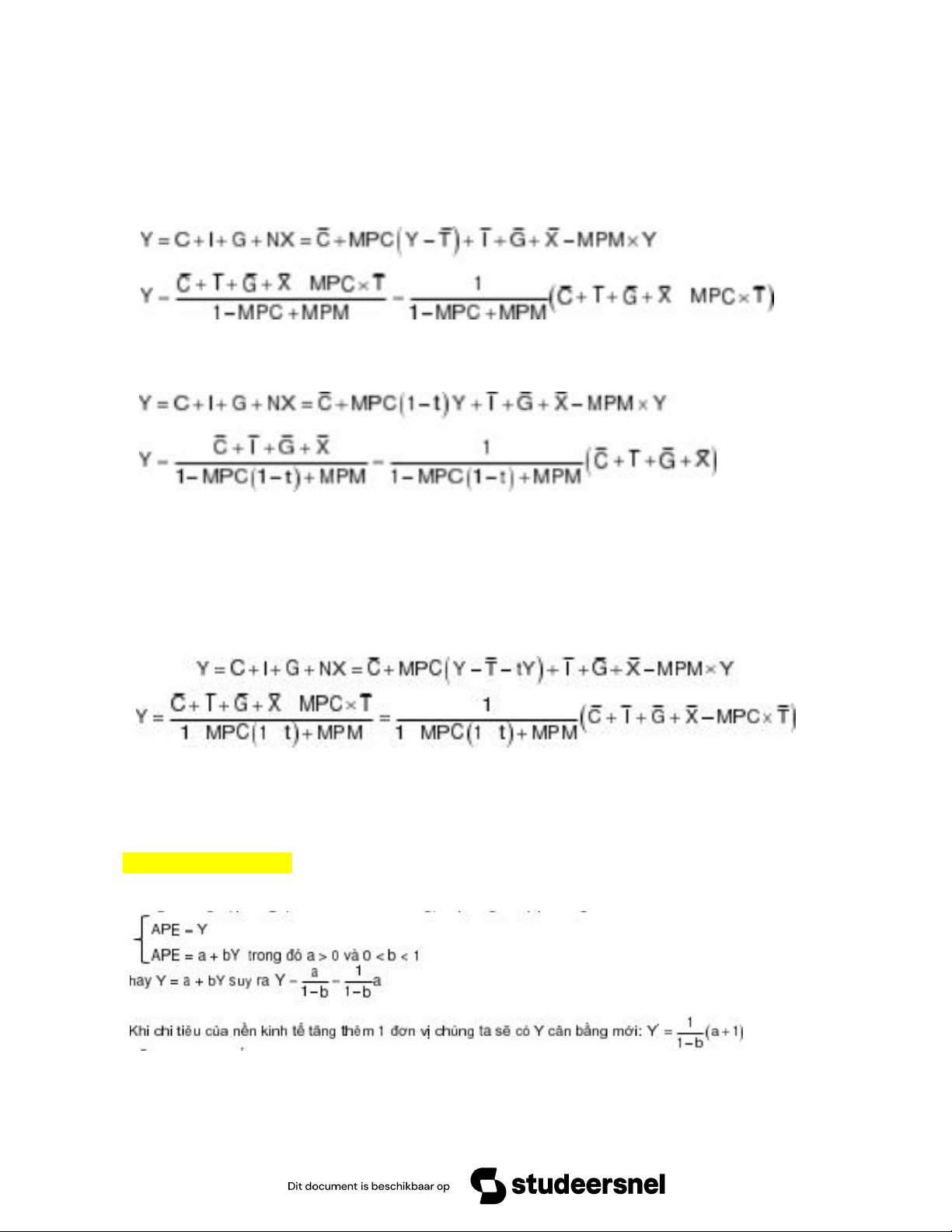 APE=C+I+G=Cngang+MPC (Y-T ngang)+Ingang+Gngang+dentaGngang Tim Y cb1