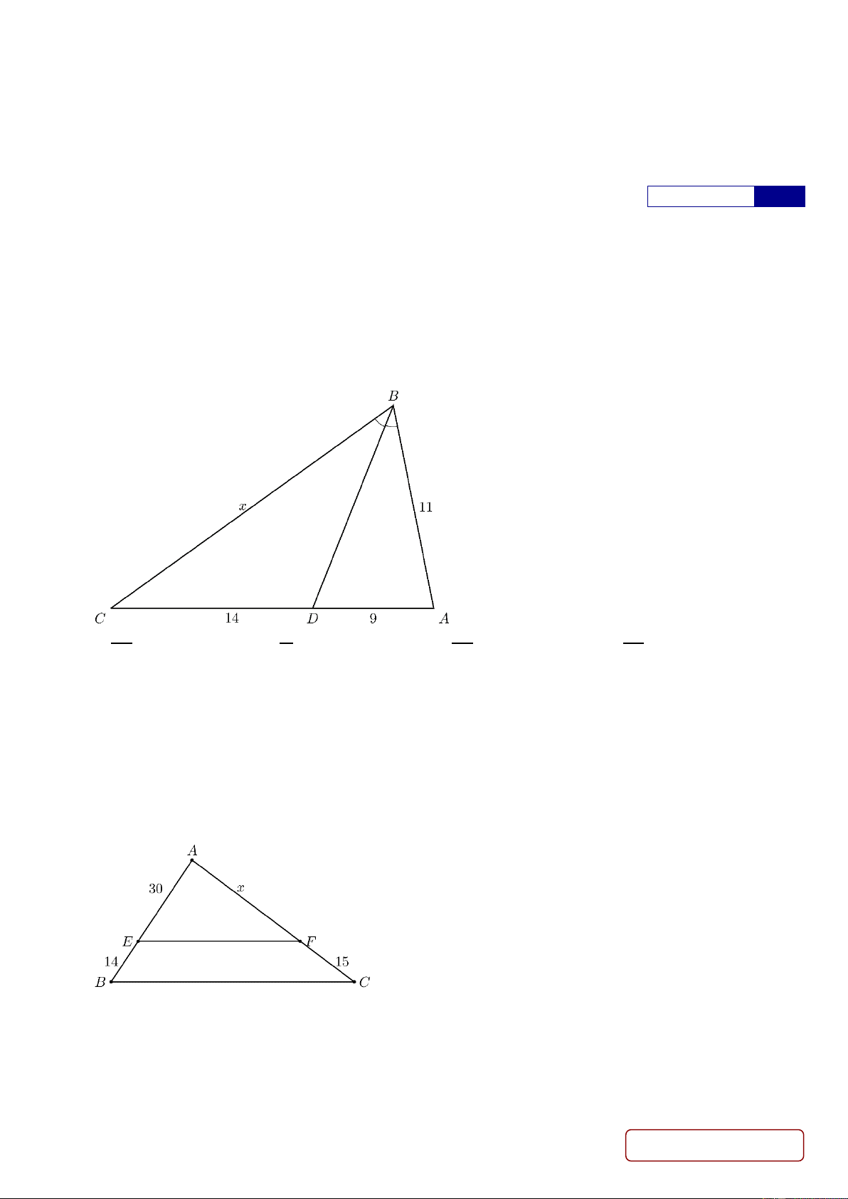 Câu 7: Tính độ dài 𝑥 trong hình sau biết 𝐸𝐹//𝐵𝐶 (làm tròn kết quả đến chữ số thập phân thứ nhất) A. 35,1. B. 30,1. C. 33,1. D. 32,1.
