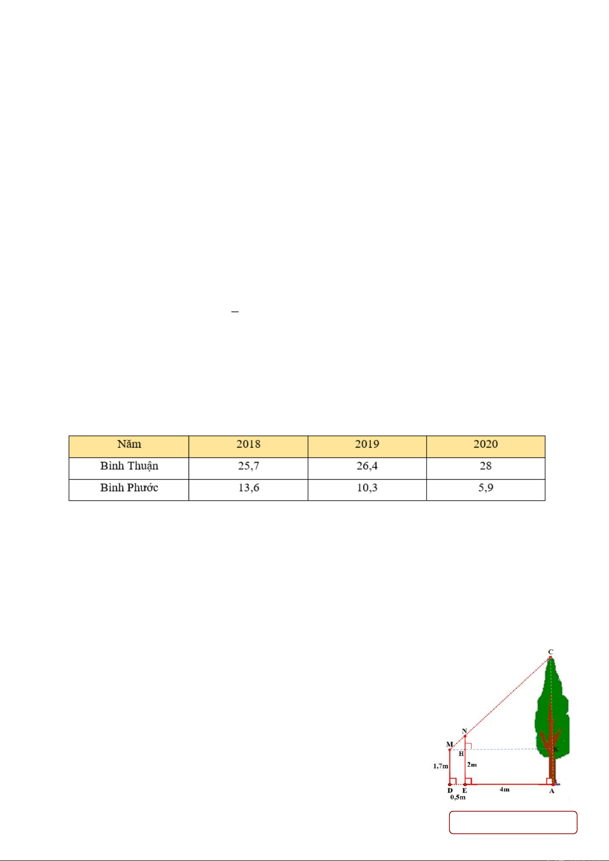 Câu 3: (0,5 điểm) Một người đo chiều cao của một cây