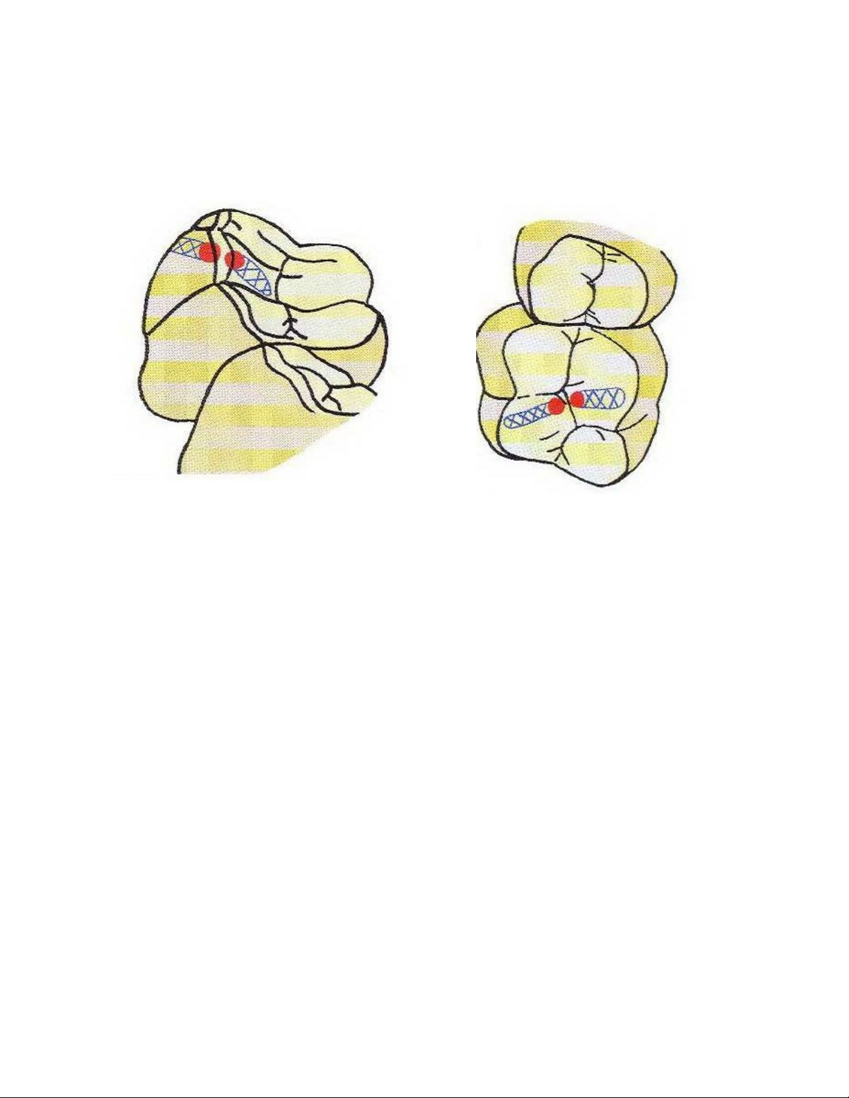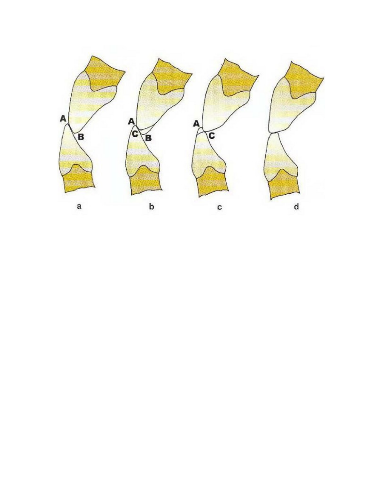 không đóng các chu kỳ nhai được thành lập trên các răng bên cạnh (hình vẽ).
