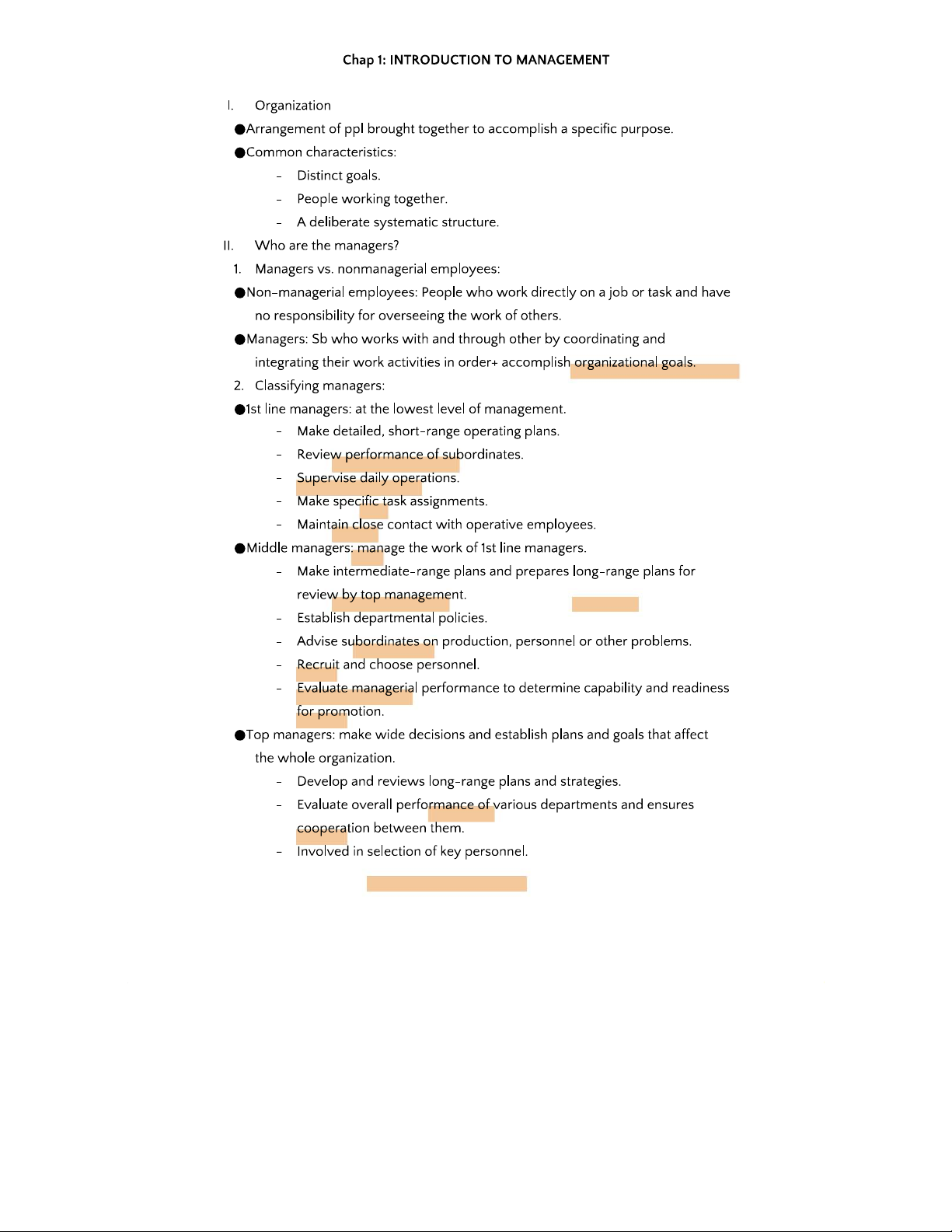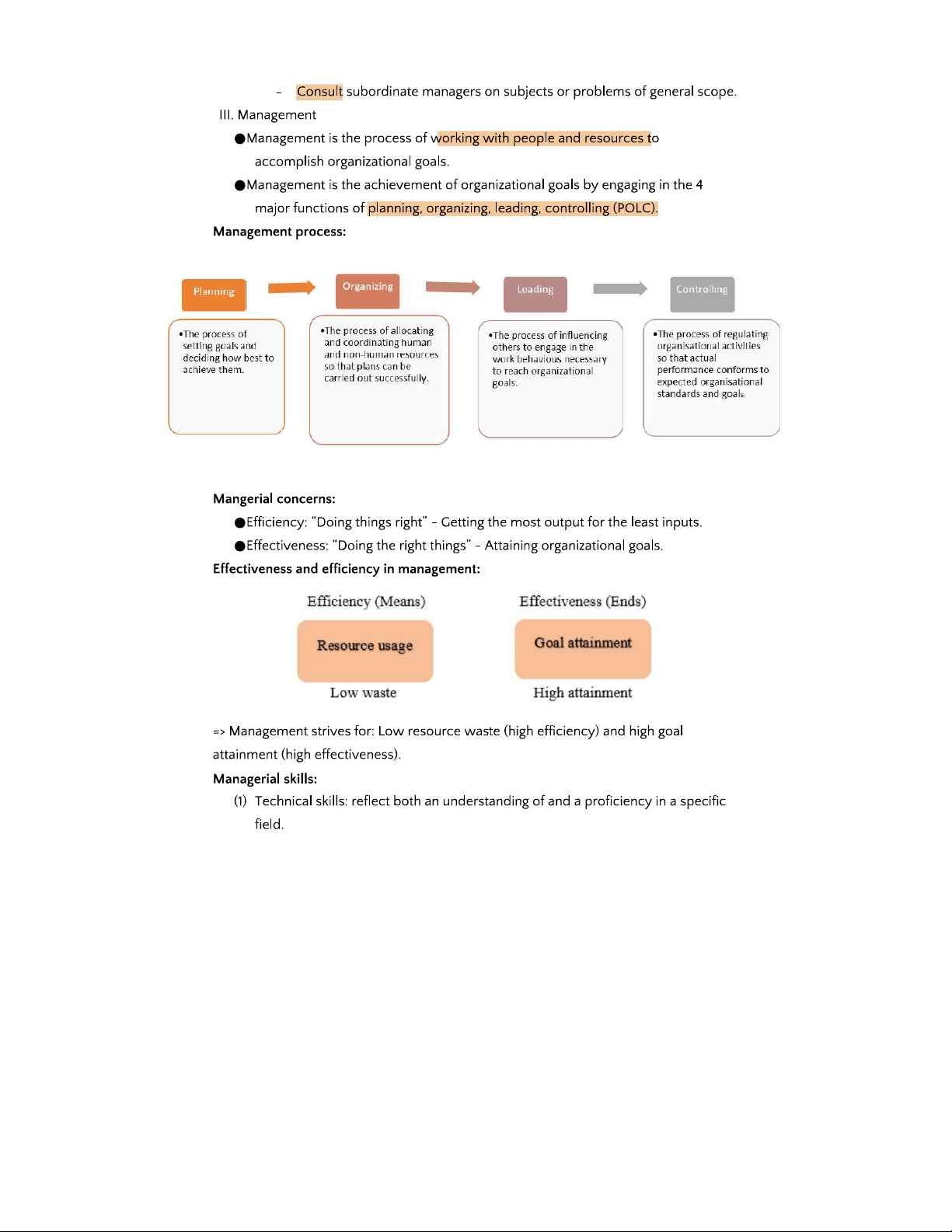 Management - Lecture Notes on Chapters 1, 2, and 3