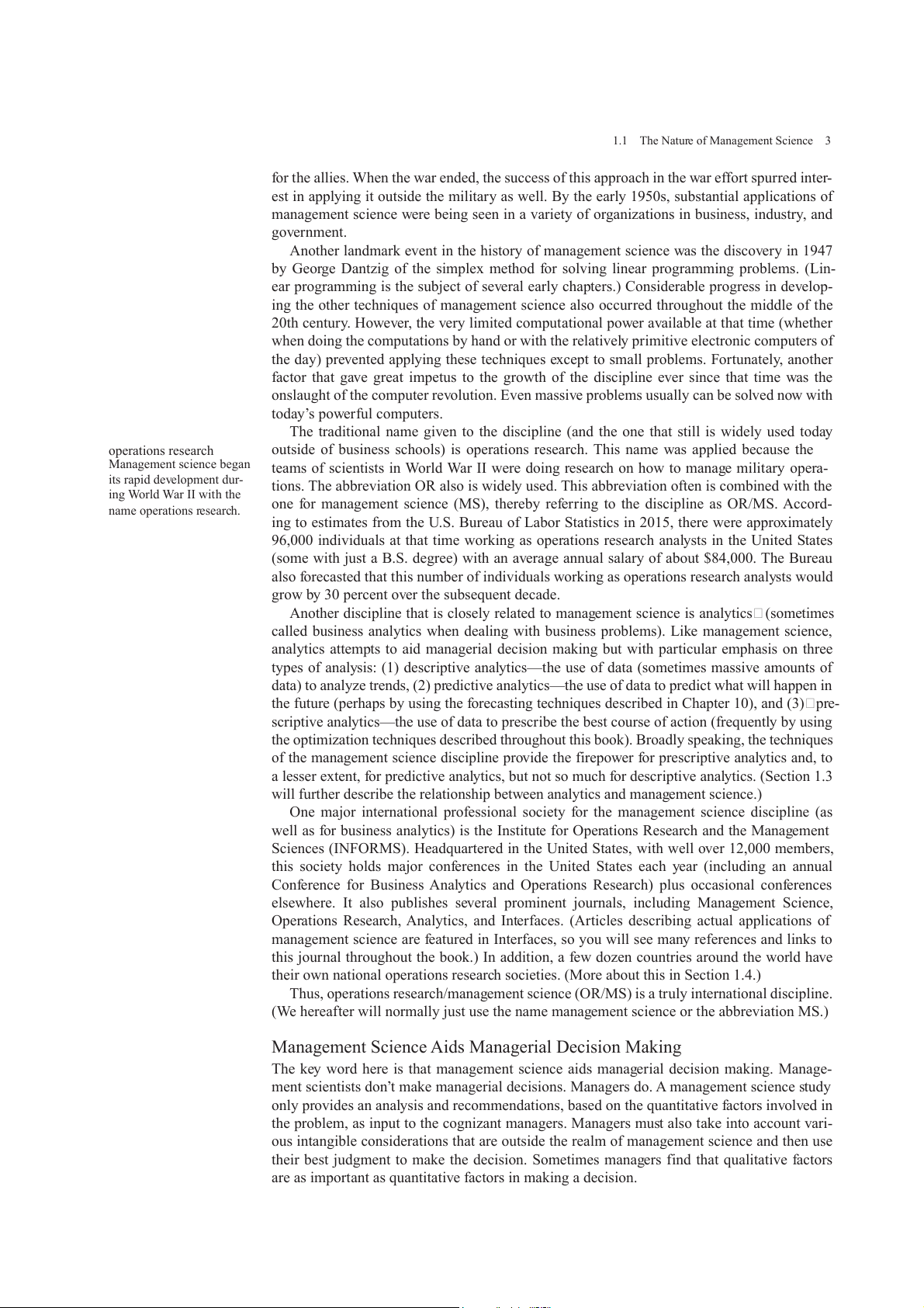1.1 The Nature of Management Science 3