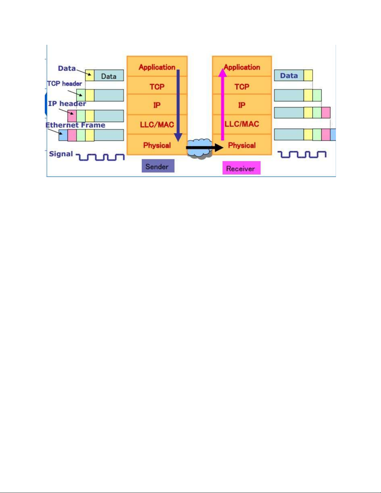 +) Bên nhận: Mỗi tầng xử lý gói tin dựa trên thông tin trong phần đầu, sau đó bỏ