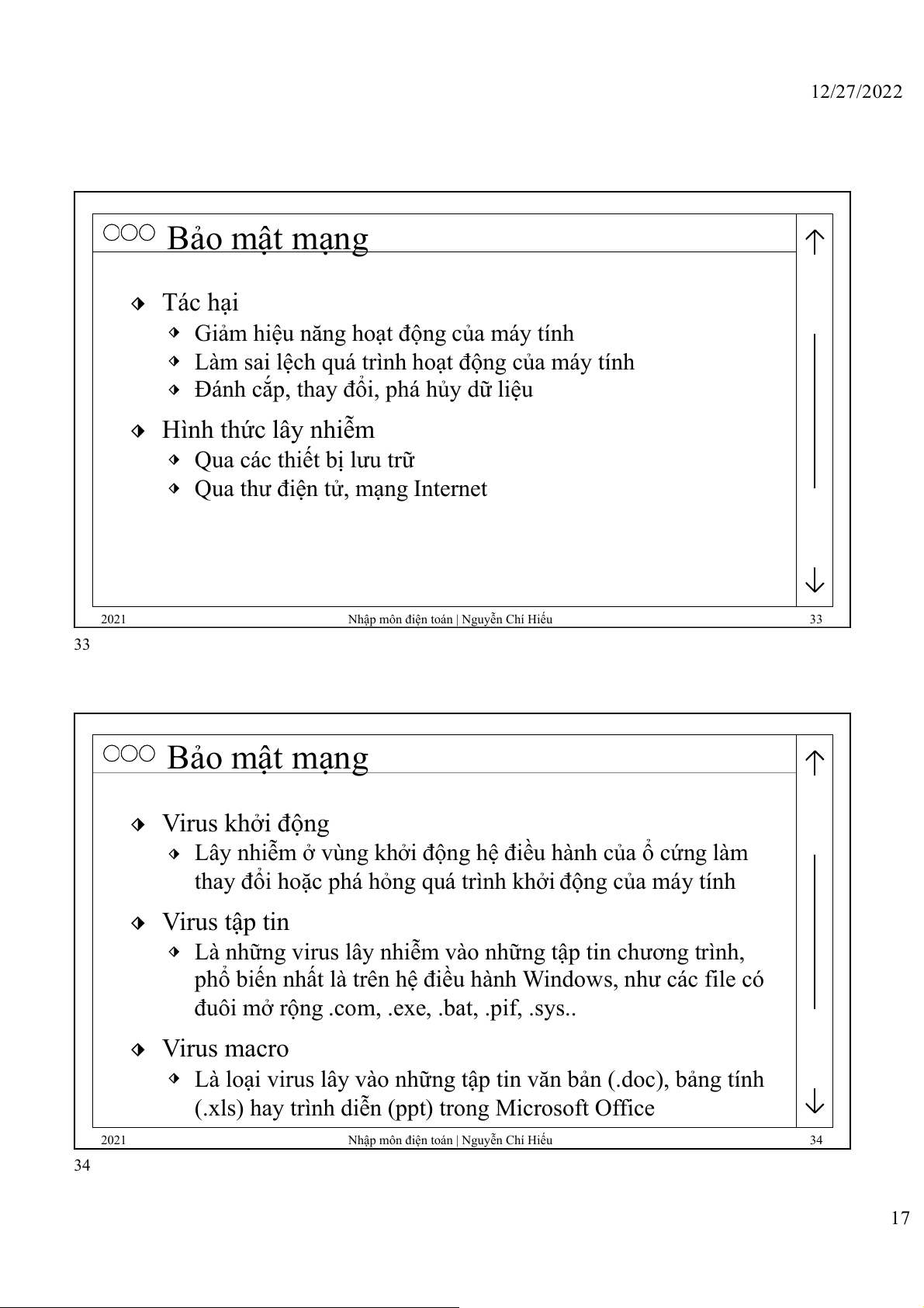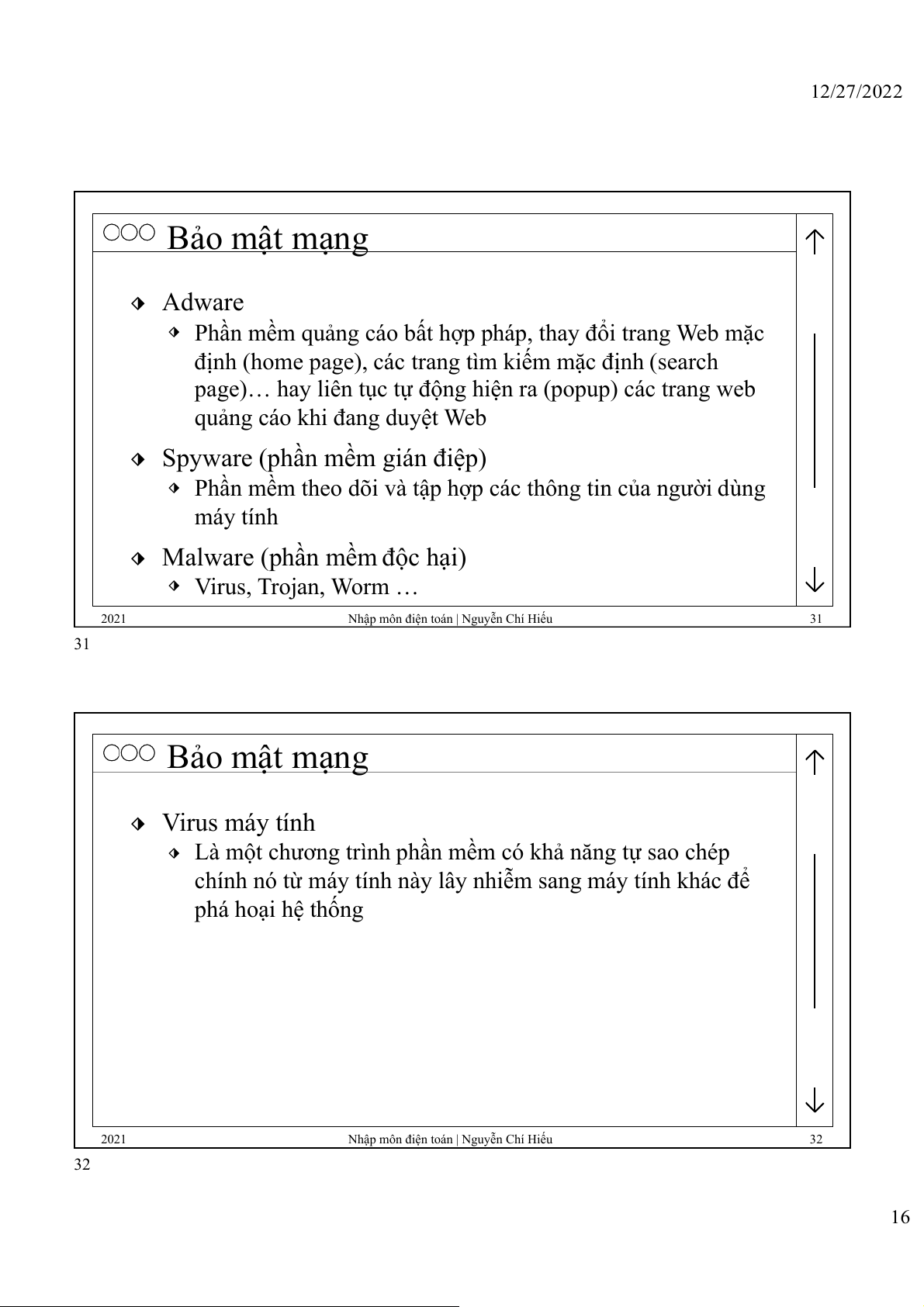Nhập môn điện toán | Nguyễn Chí Hiếu 31 31 Bảo mật mạng ⬗ Virus máy tính