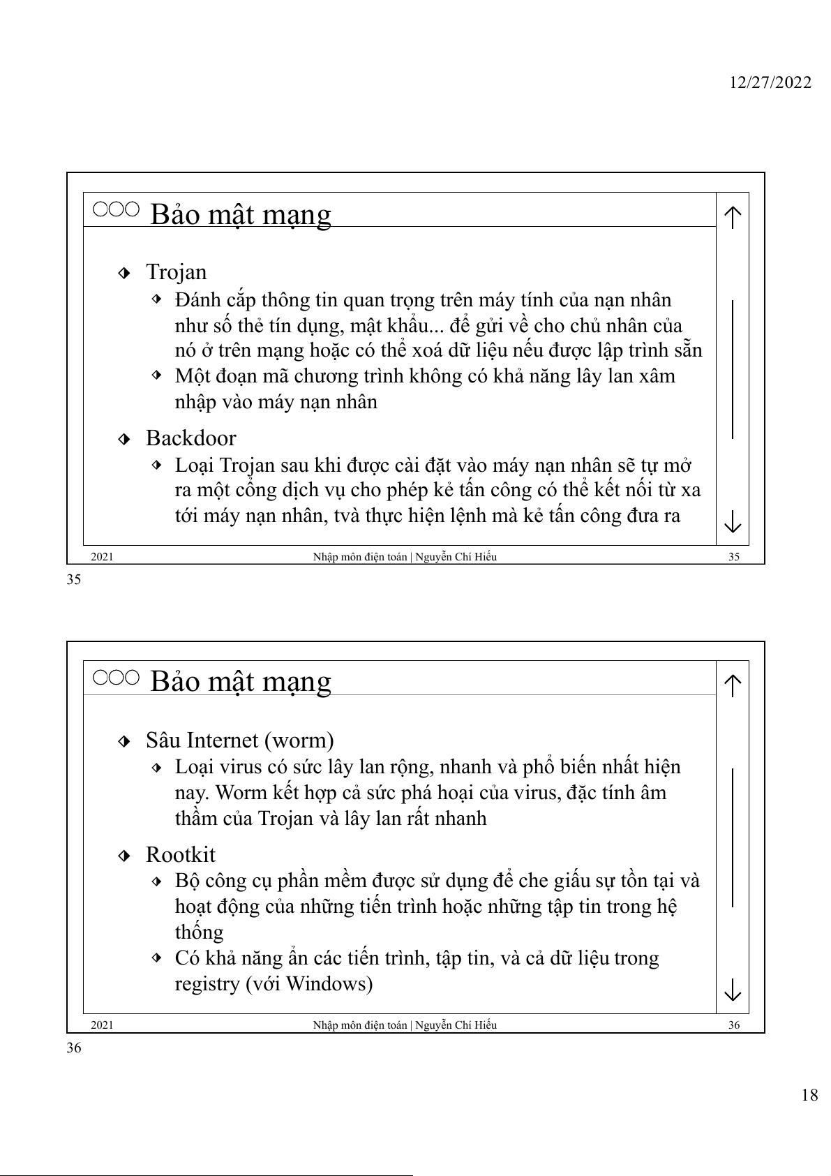 Nhập môn điện toán | Nguyễn Chí Hiếu 34 34 17 12/27/2022 Bảo mật mạng ⬗ Trojan