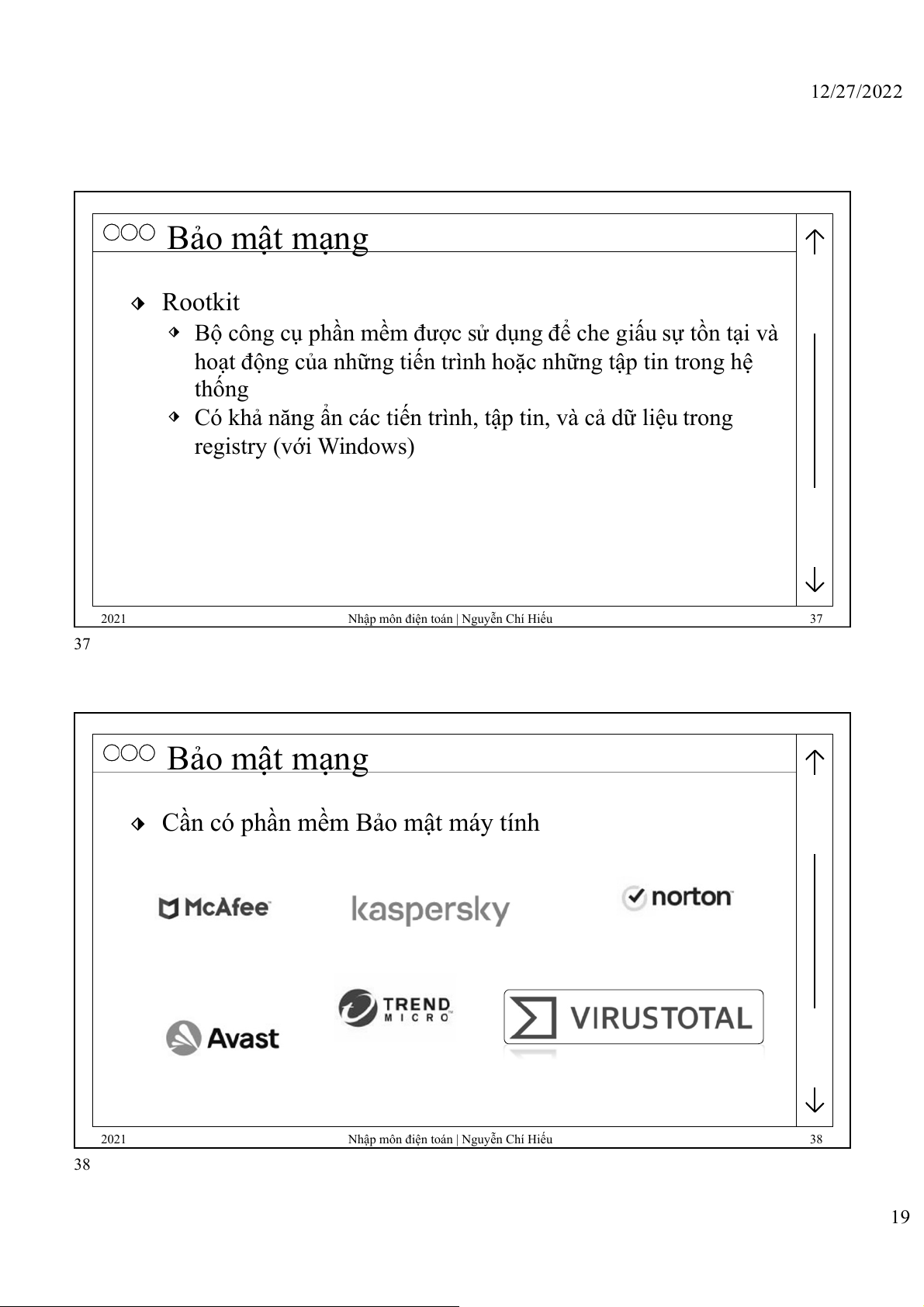 Nhập môn điện toán | Nguyễn Chí Hiếu 36 36 18 12/27/2022 Bảo mật mạng ⬗ Rootkit