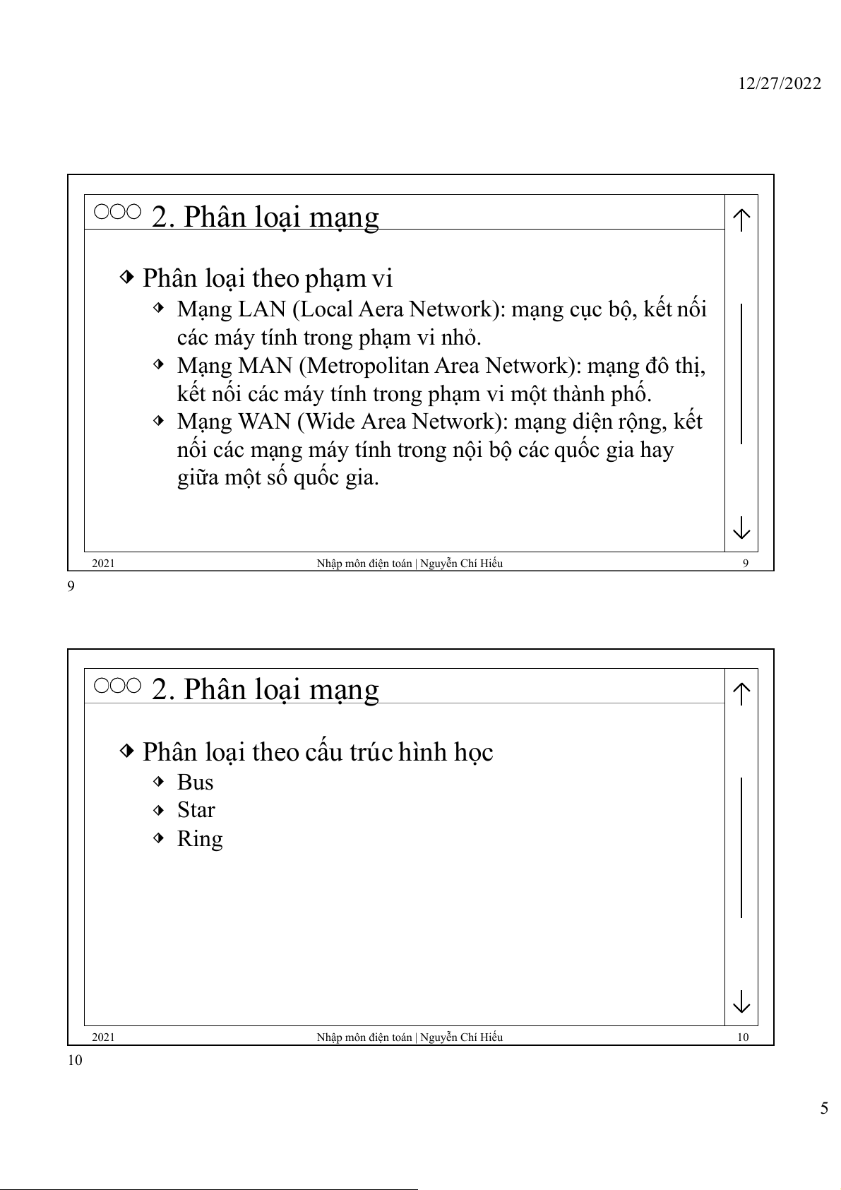 Nhập môn điện toán | Nguyễn Chí Hiếu 6 6 3 12/27/2022 2. Phân loại mạng 2021