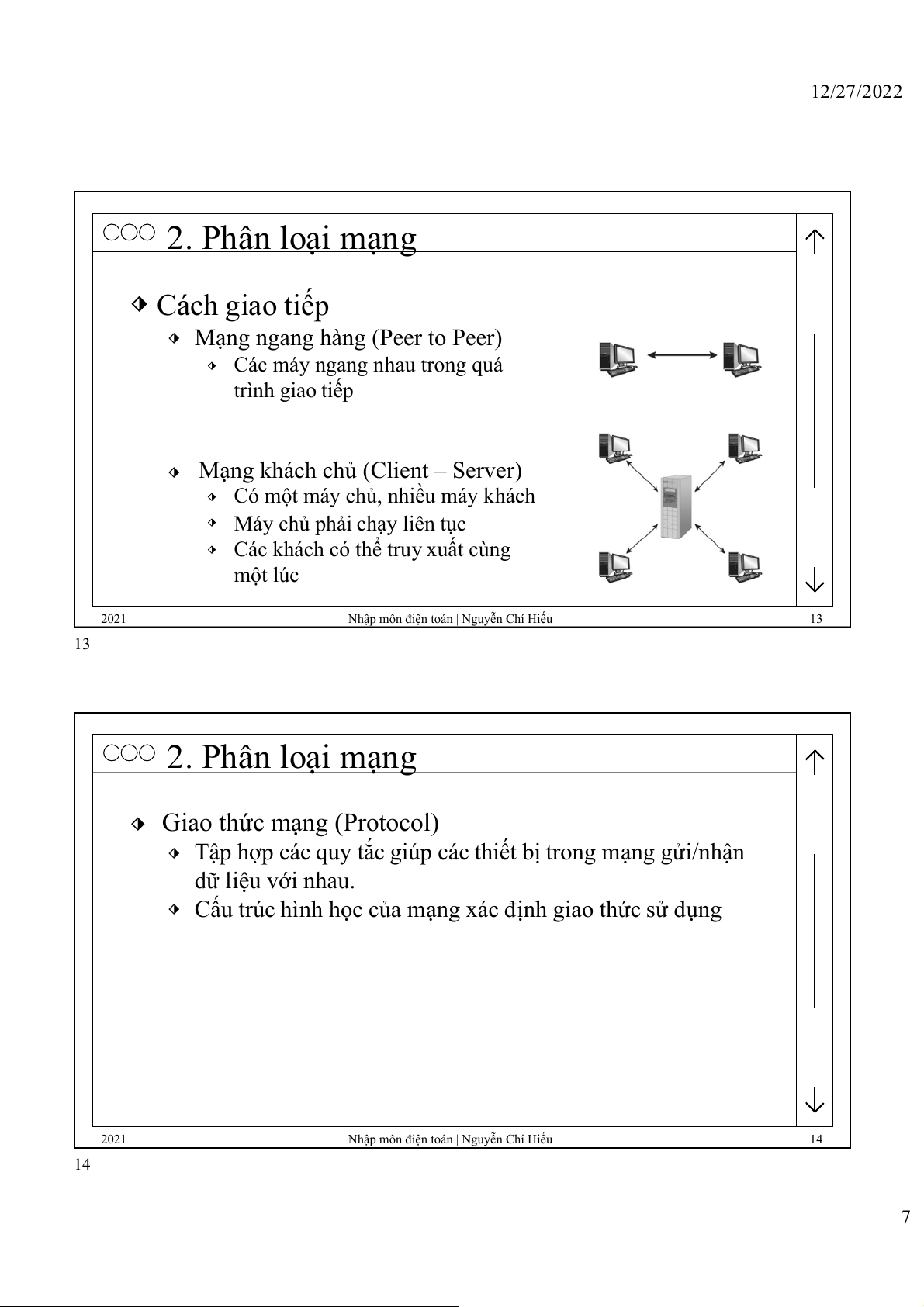 Nhập môn điện toán | Nguyễn Chí Hiếu 12 12 6 12/27/2022 2. Phân loại mạng ⬗ Cách giao tiếp