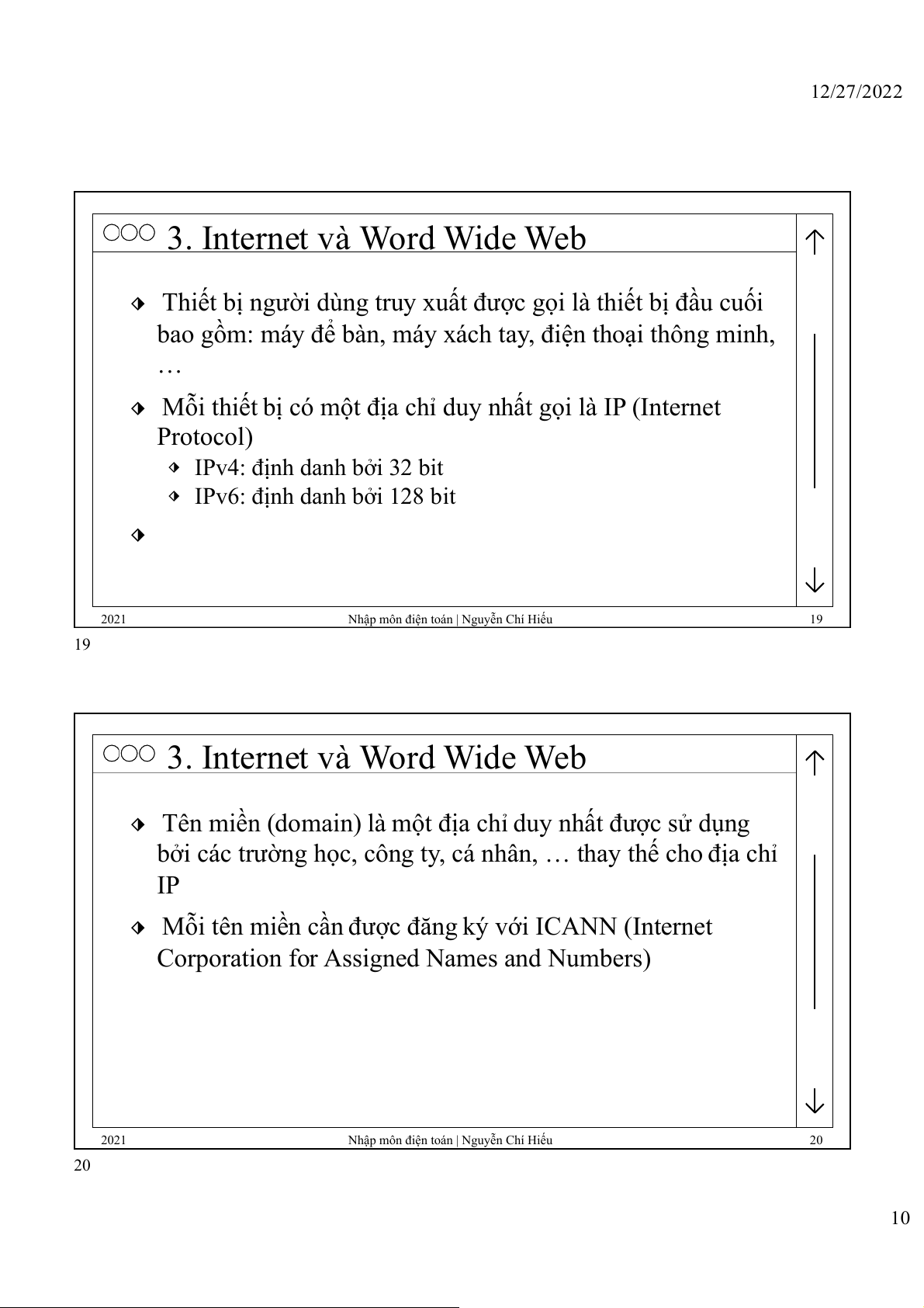 Nhập môn điện toán | Nguyễn Chí Hiếu 20 20 10 12/27/2022 3. Internet và Word Wide Web