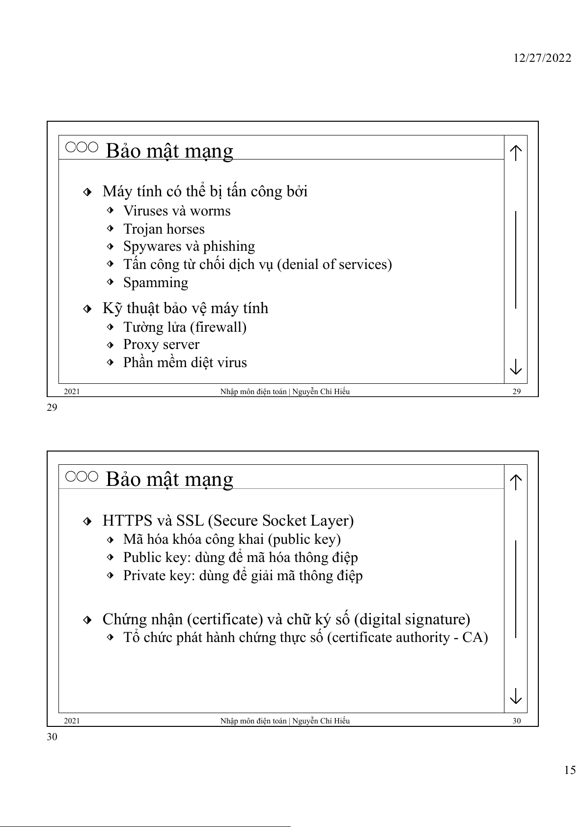 Nhập môn điện toán | Nguyễn Chí Hiếu 28 28 14 12/27/2022 Bảo mật mạng