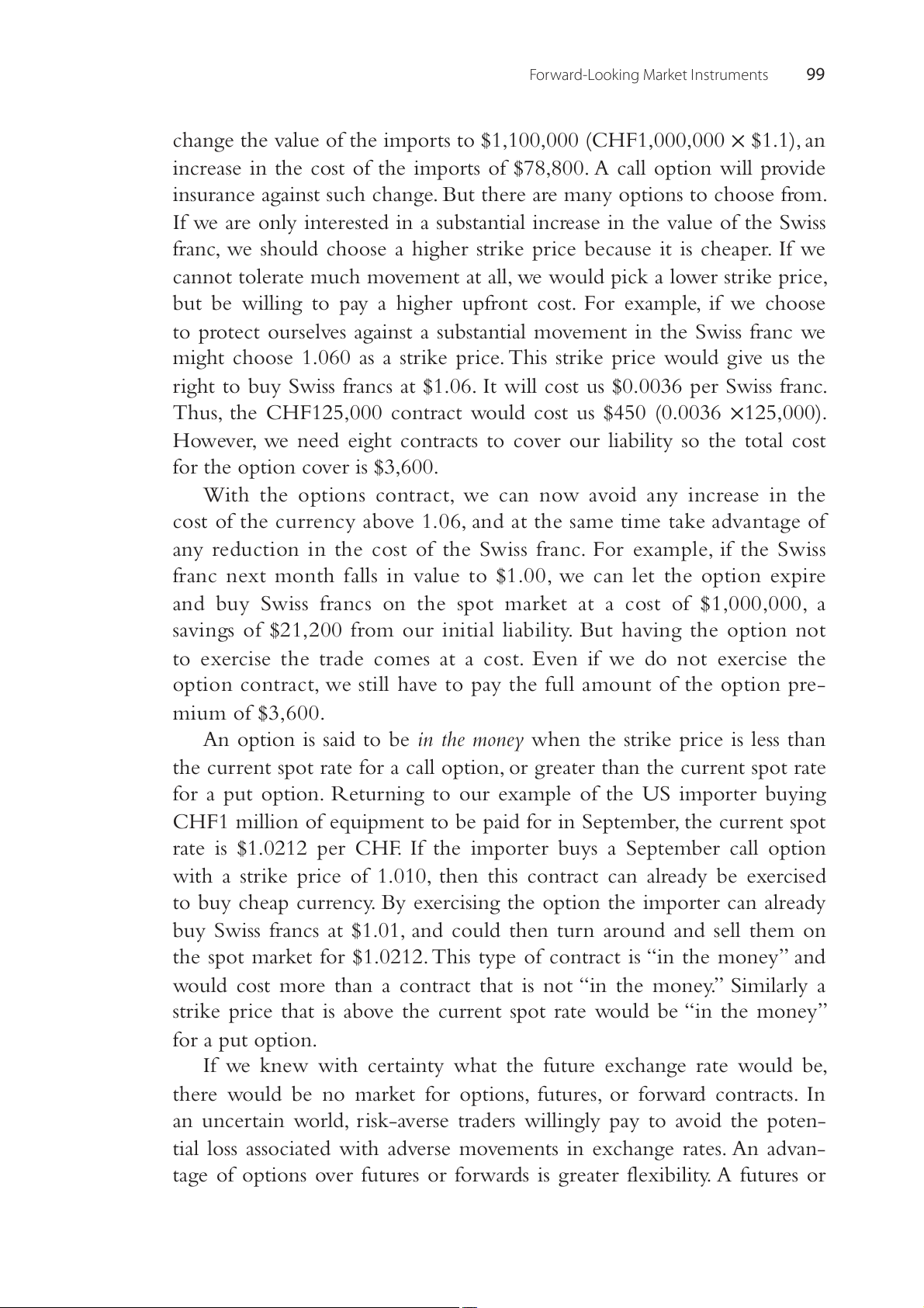 paying $100,634 for 100,000 Swiss franc in the spot market, the importer