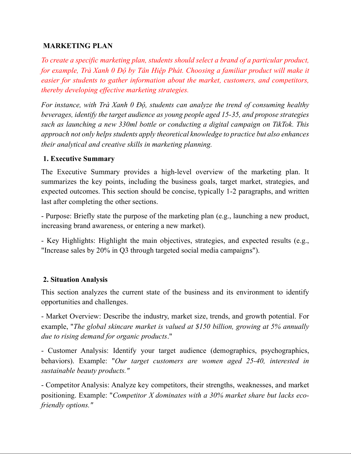 their analytical and creative skills in marketing planning. 1. Executive Summary