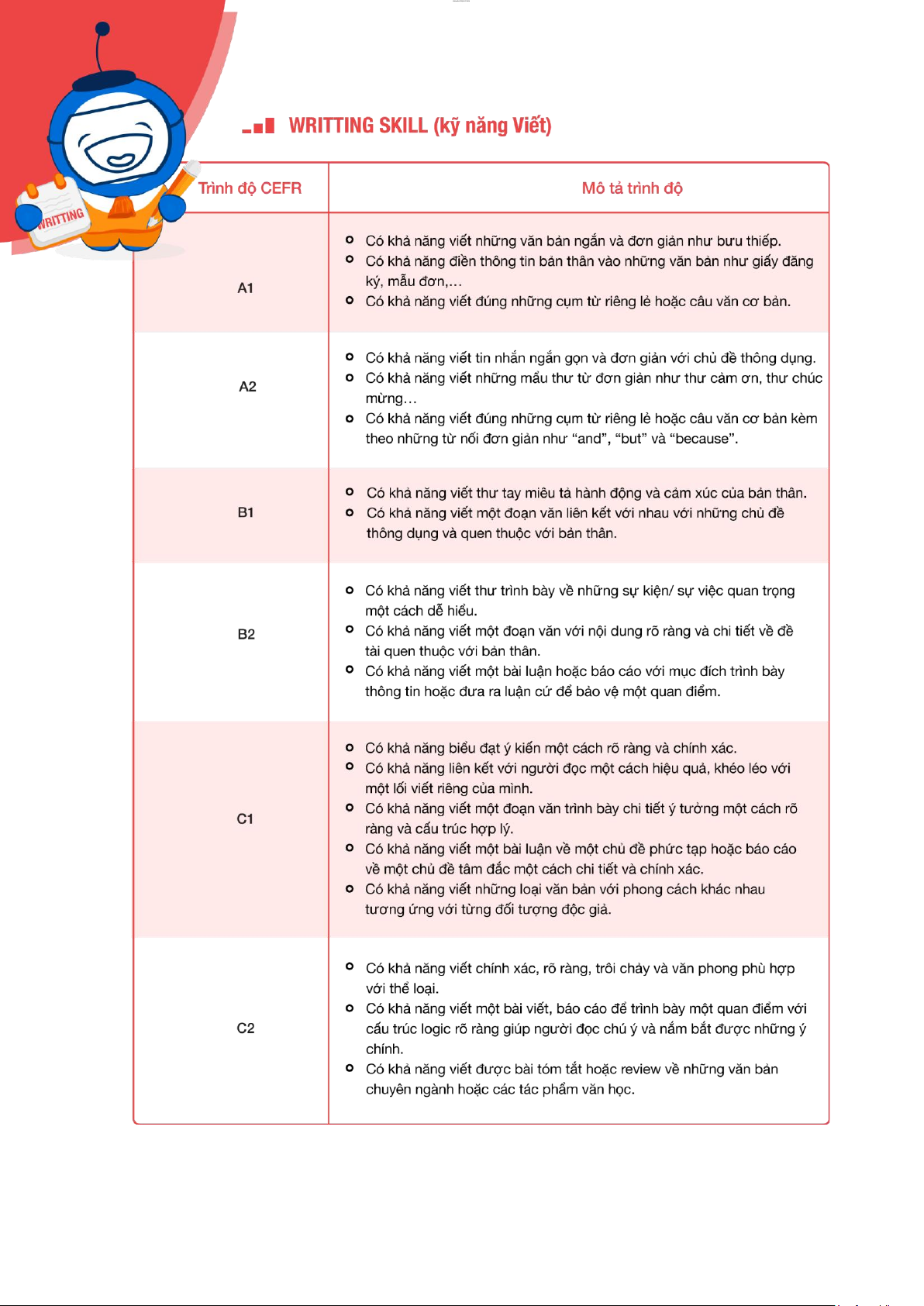 thể dựa theo các mô tả chi tiết ở các bảng trên để biết được trình độ của mình.