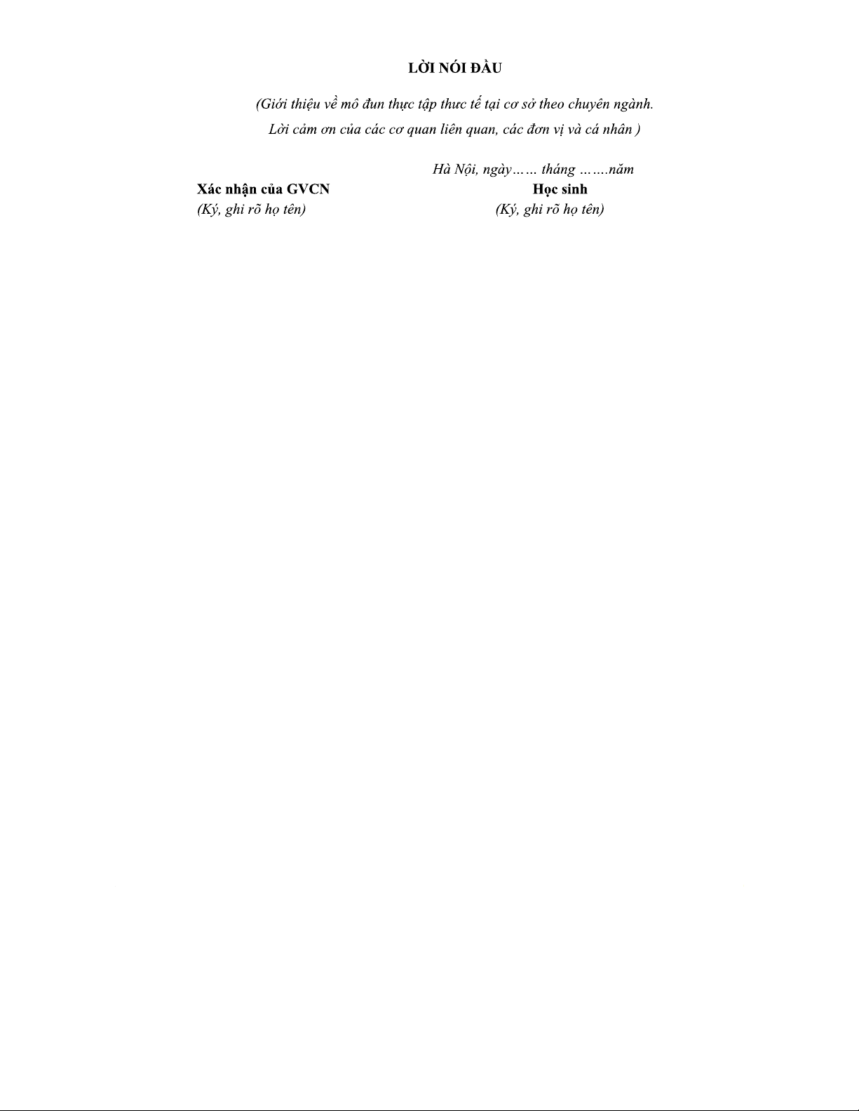 Mẫu Báo cáo Thực tập Tốt nghiệp - Biểu mẫu 03