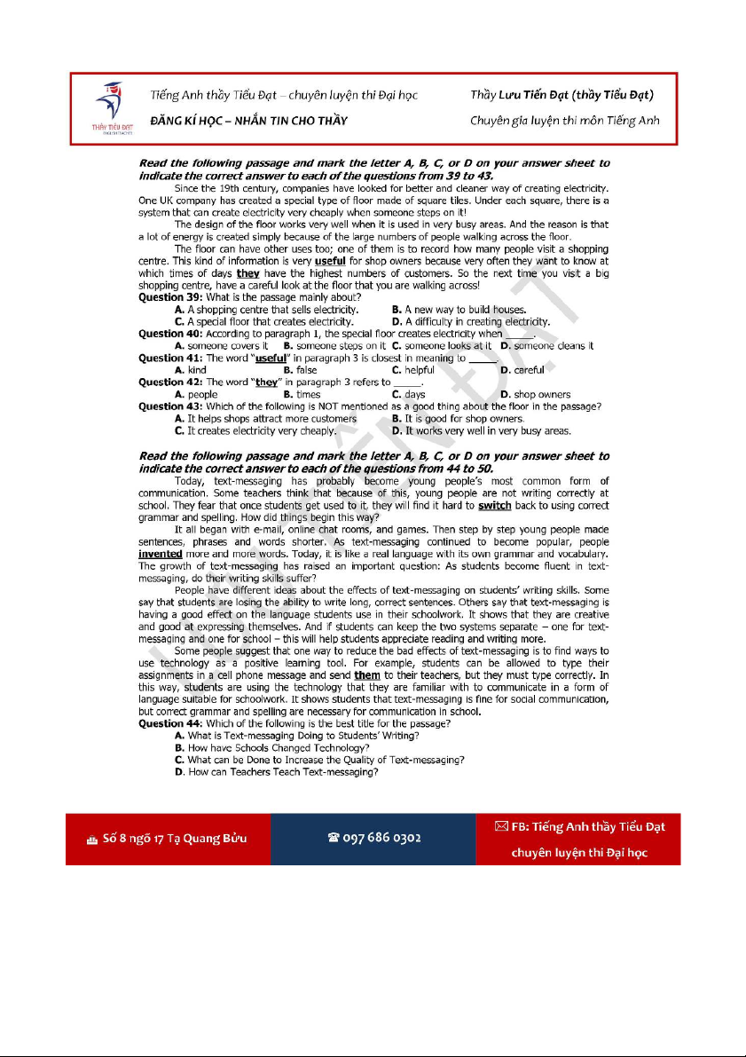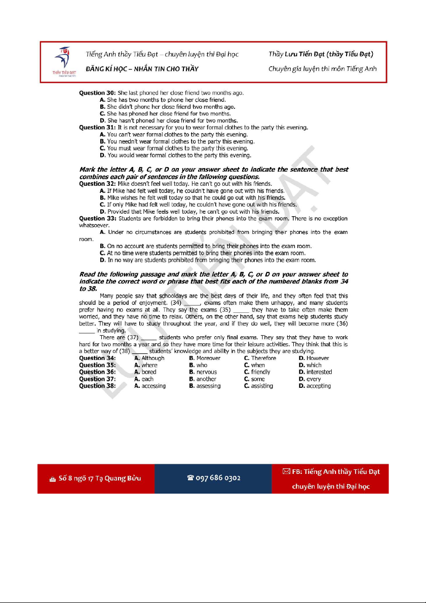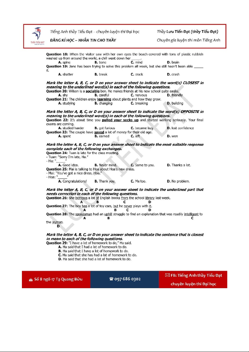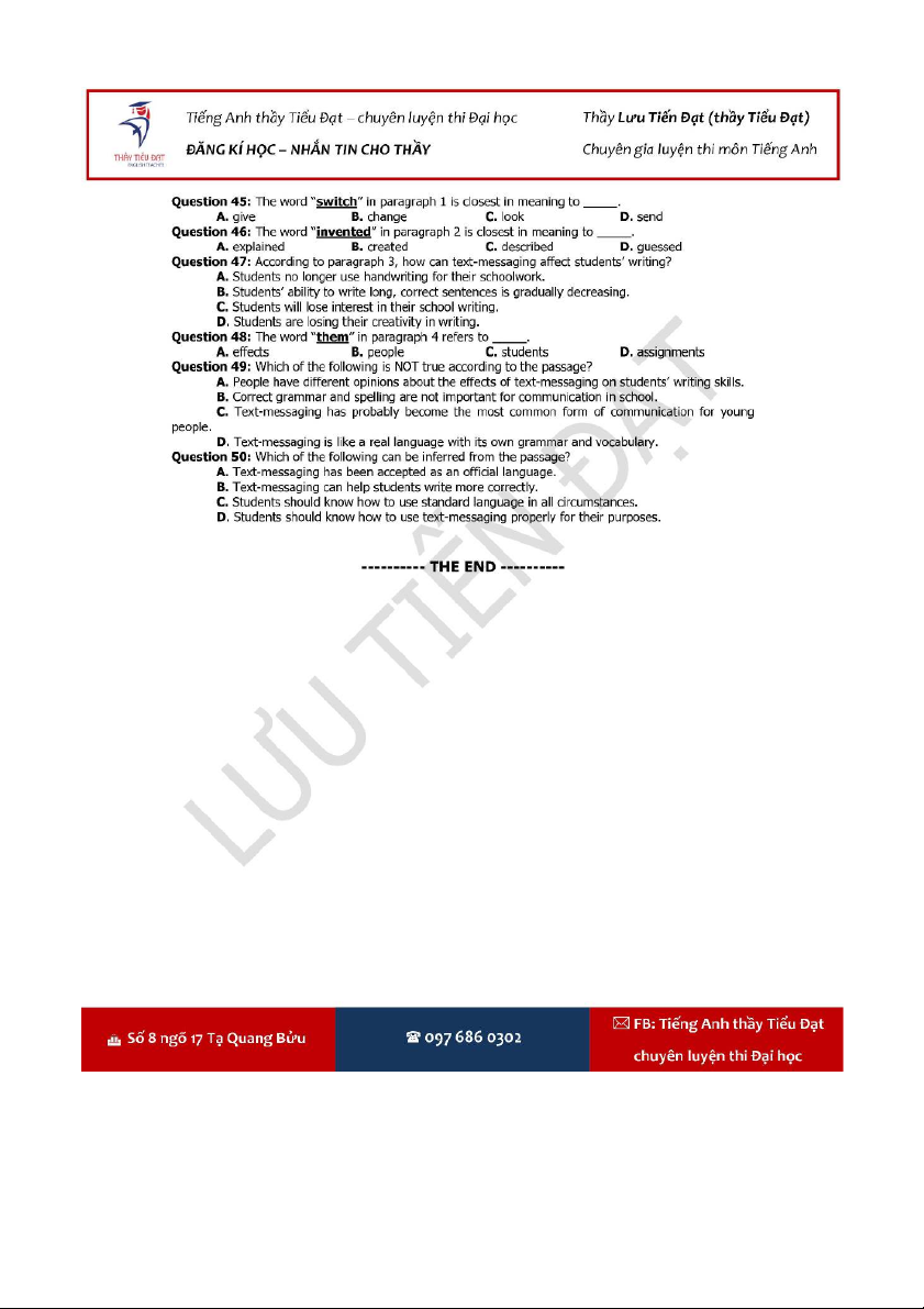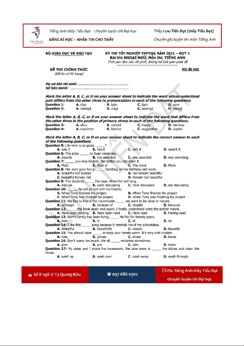Mẫu đề thi mã 01 - Tài liệu tham khảo | Đại học Hoa Sen