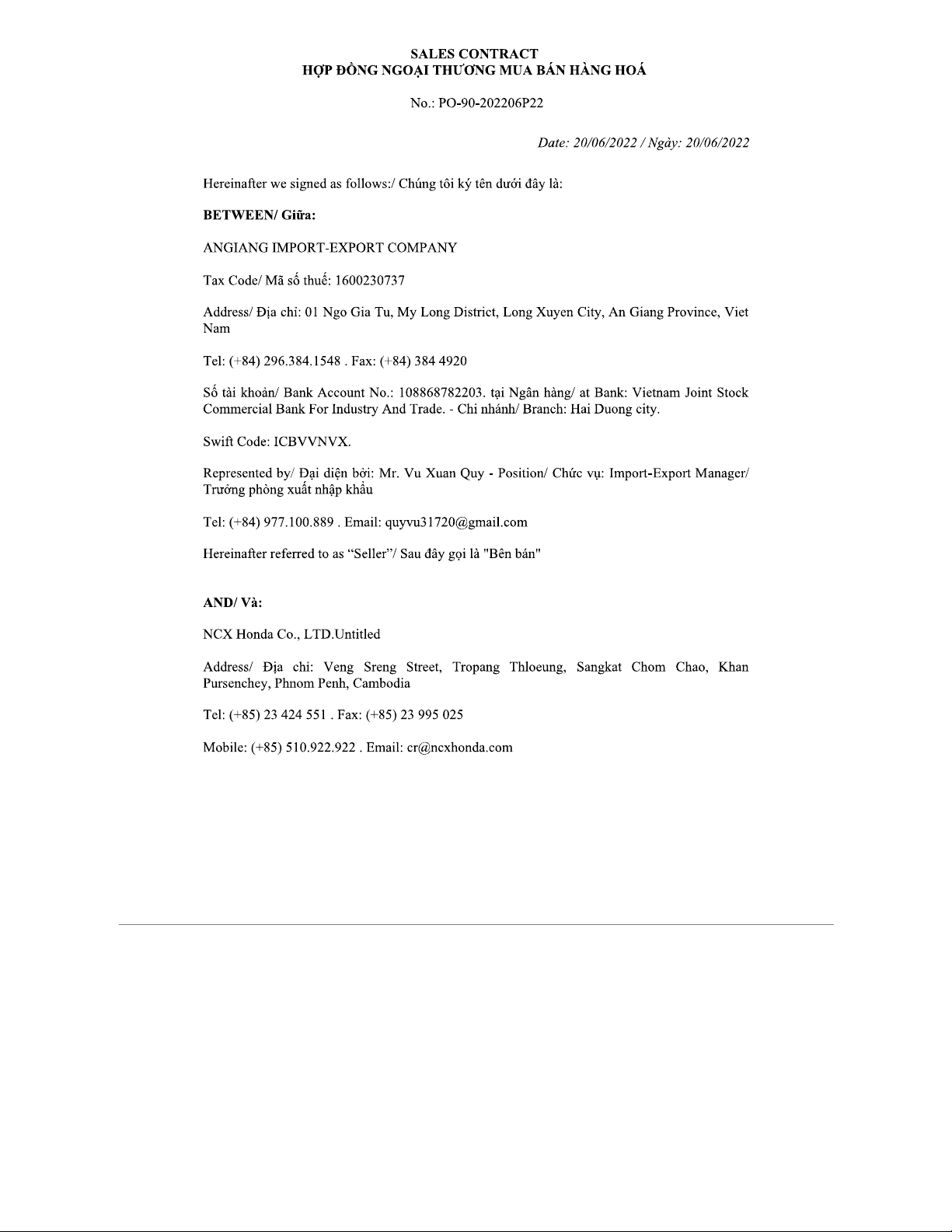 MẪU HỢP ĐỒNG NGOẠI THƯƠNG MUA BÁN HÀNG HÓA PO-90-202206P