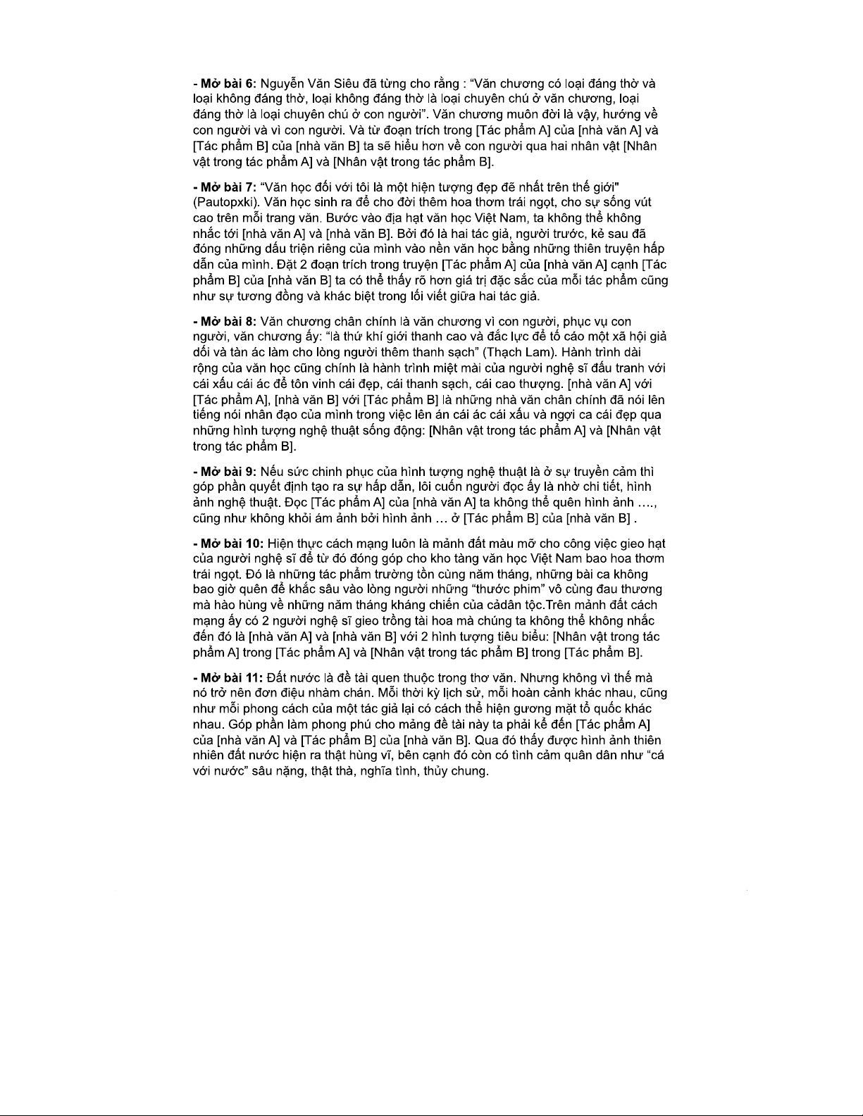 MẪU MỞ BÀI NGHỊ LUẬN VĂN HỌC CHƯƠNG TRÌNH MỚI VÀ PHÂN TÍCH TÁC PHẨM