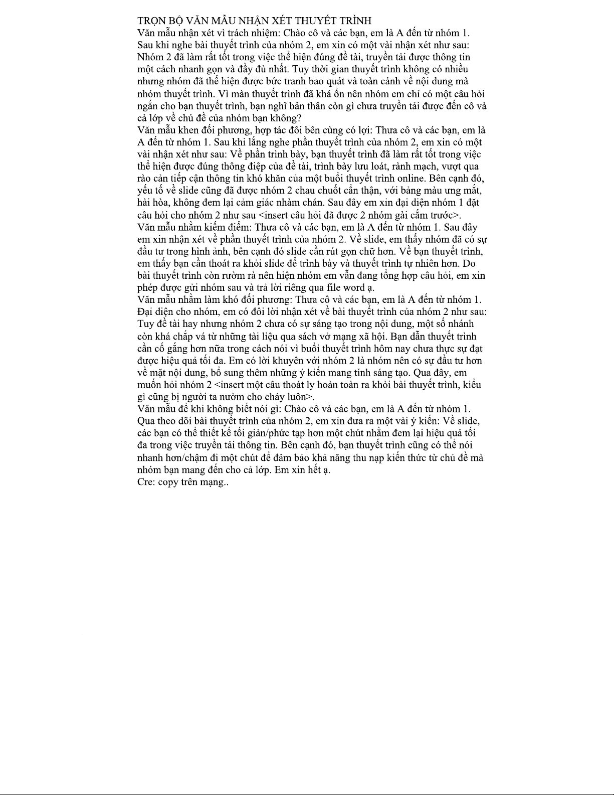 Mẫu Nhận Xét Thuyết Trình - Văn Mẫu Cho Nhóm 1 trong TRÌNH 2023