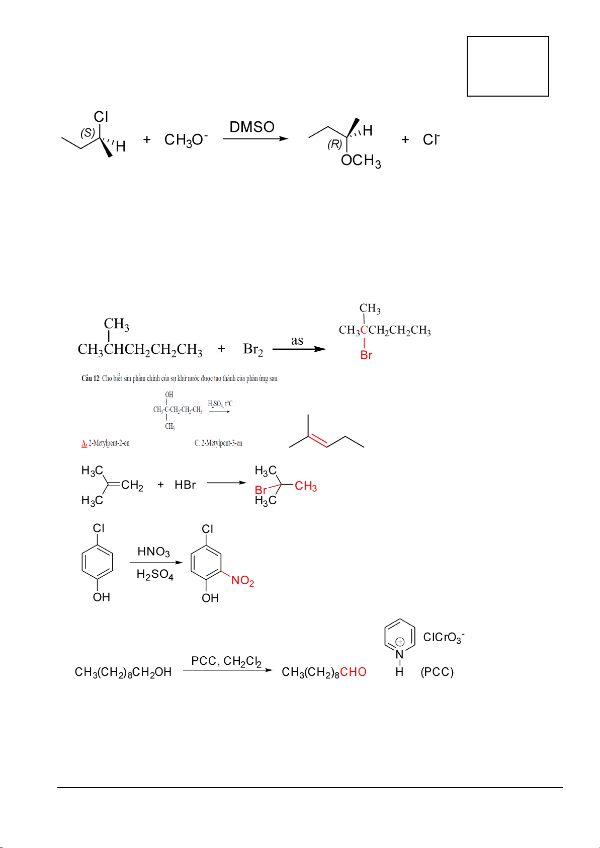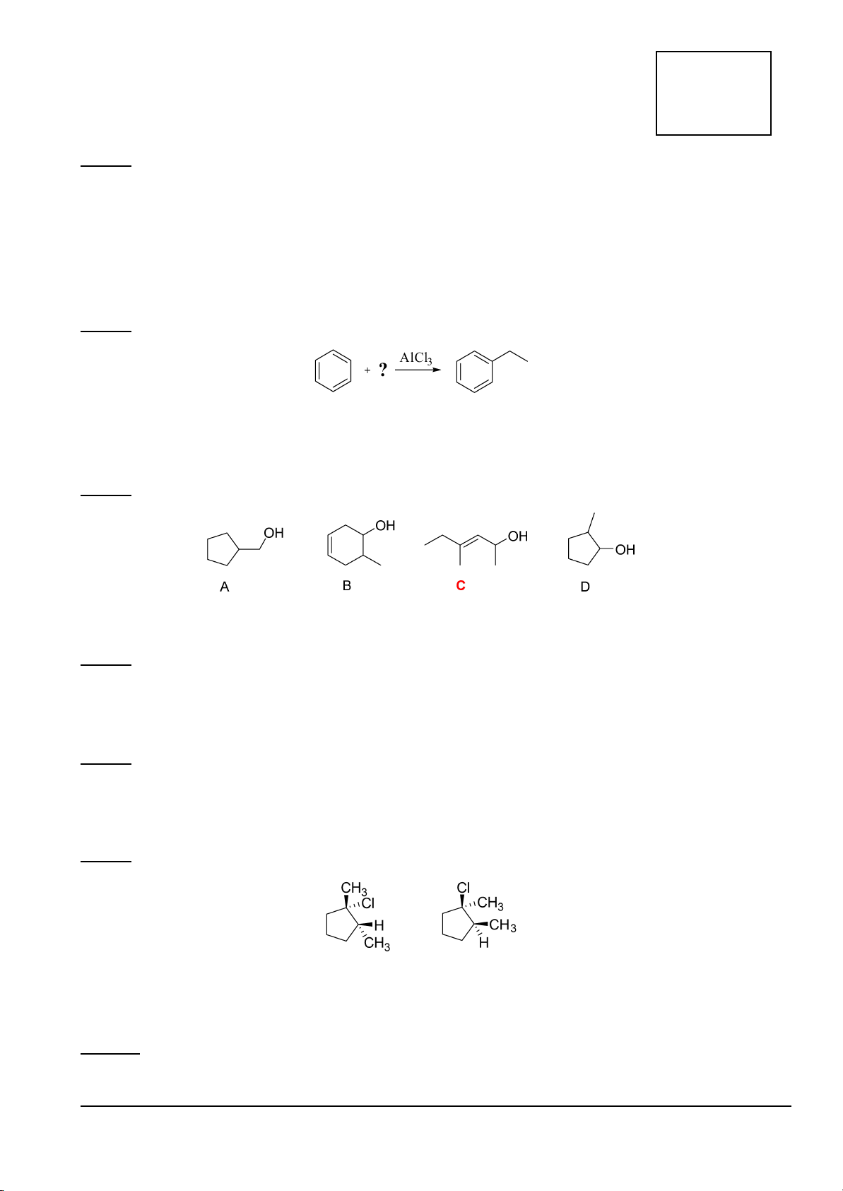 Câu 3. (2.5 đ) Viết sản phẩm chính cho các phản ứng sau. 0.5đ cho mỗi câu. a) b) c) d) e) (Đề thi gồm 7 trang)