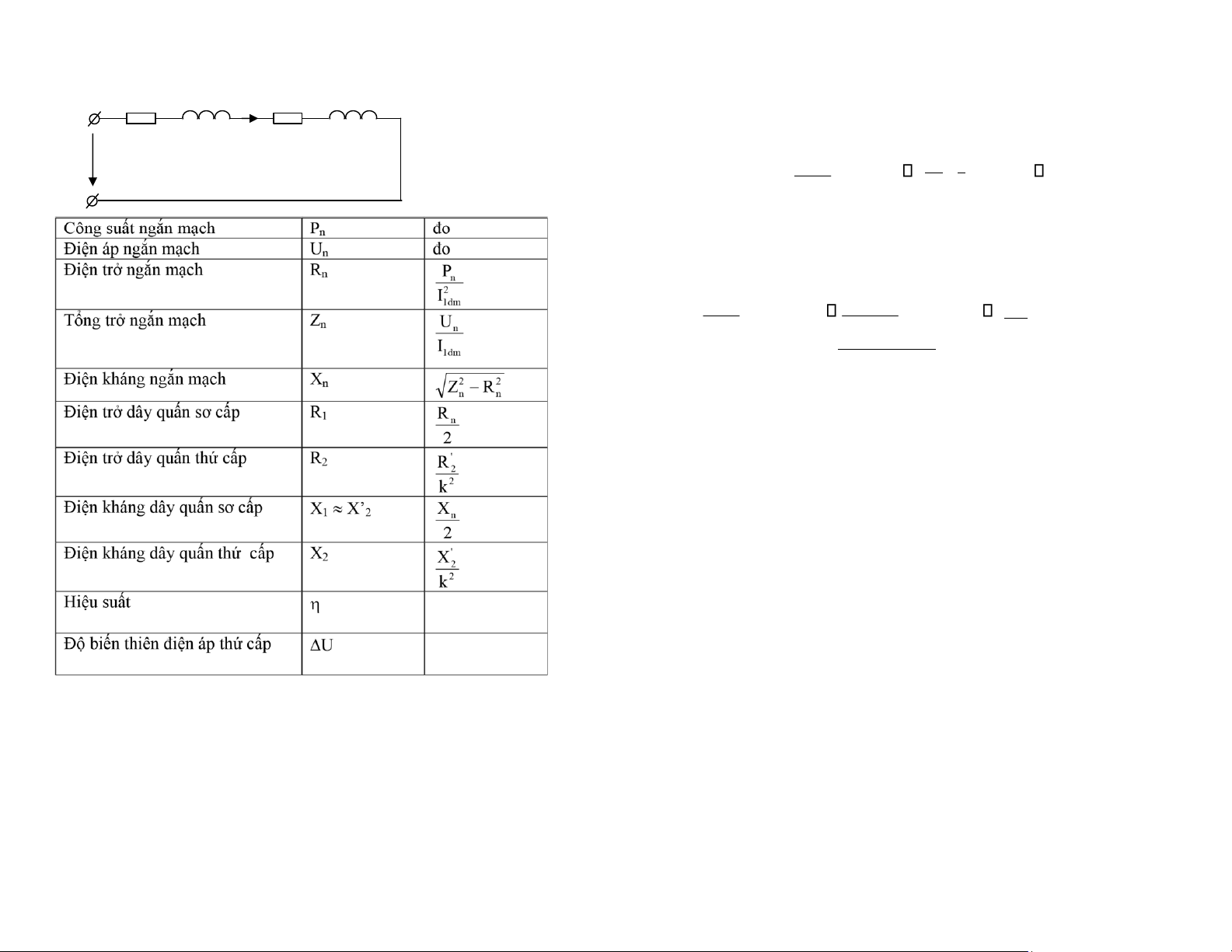1 ZthI0 (R th + jXth )I0 đặc trưng cho từ I P 0 1 = I 0 thông chính do I 0 sinh ra V1 V2 U 2 đ m U 1 đm R 2