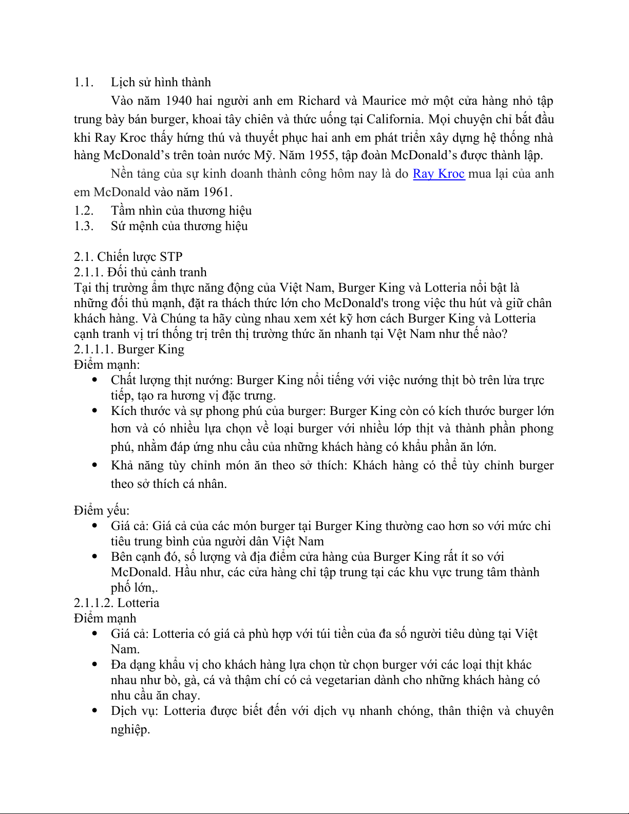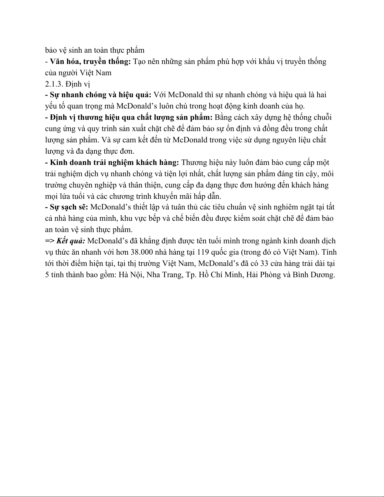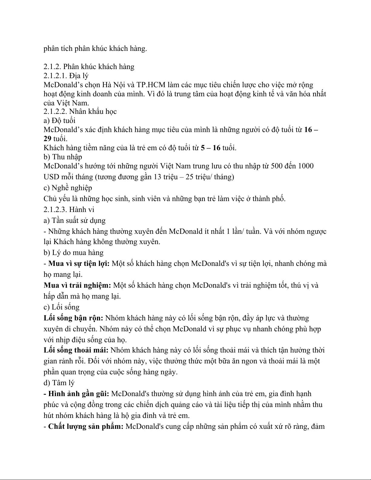 Vì vậy, McDonald cần xác định rõ được chiến lược marketing phù hợp với sản phẩm