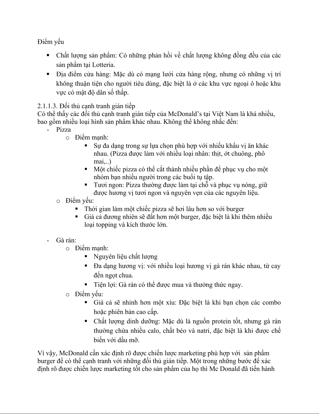 Có thể thấy các đối thủ cạnh tranh gián tiếp của McDonald’s tại Việt Nam là khá nhiều,