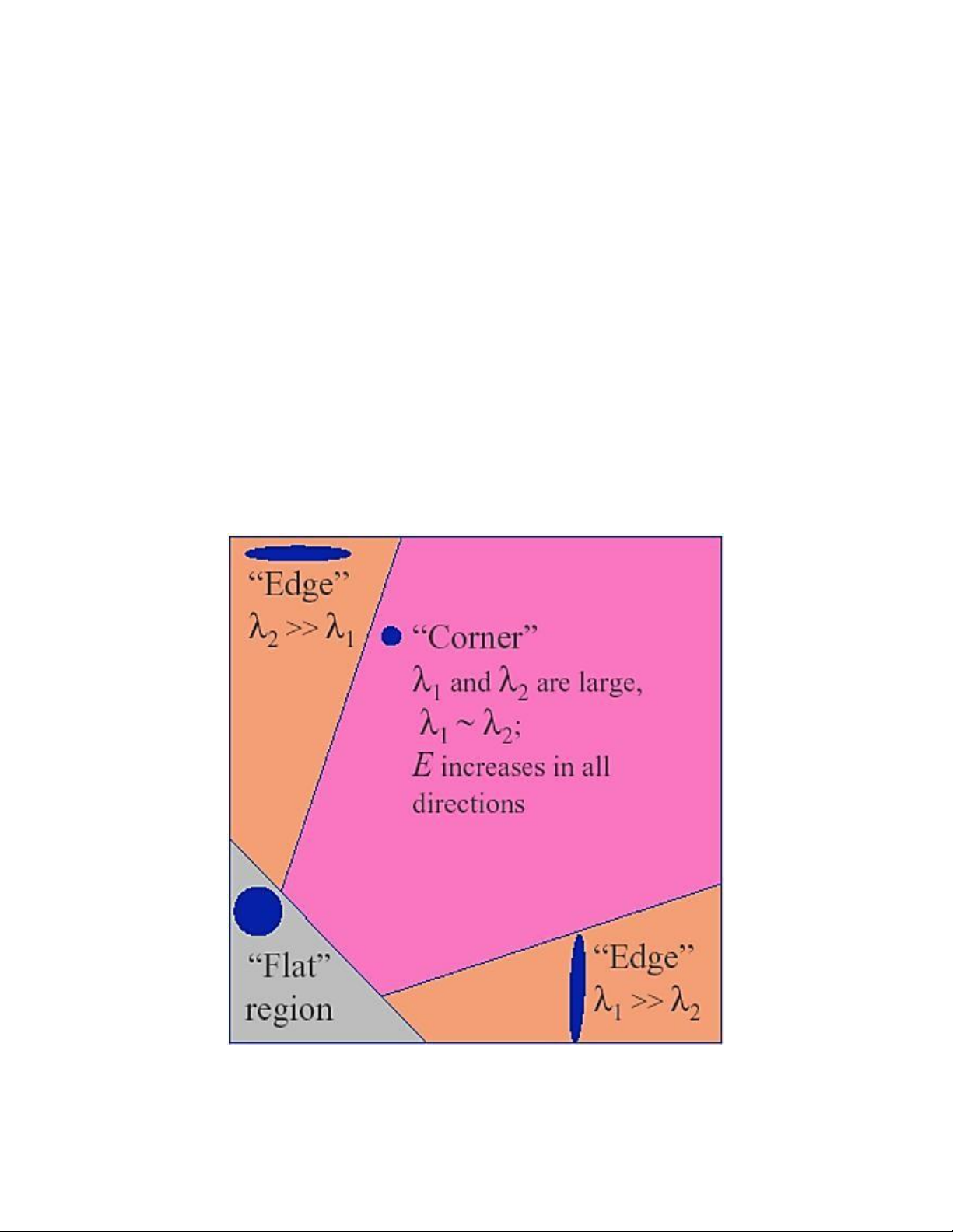 - Nếu giá trị |�| lớn thì, tức là khi �1 ≫ 1, �2 ≫ 1 và �1 ≈ �2, thì vùng pixel này chứa góc “corner”.
