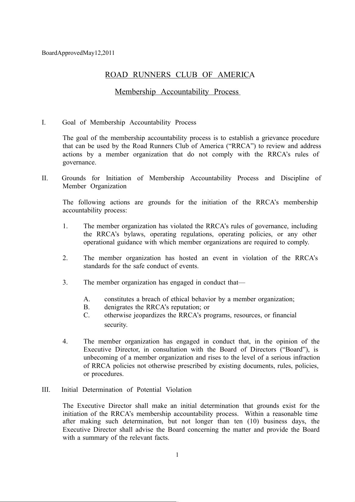The following actions are grounds for the initiation of the RRCA’s membership accountability process: 1.