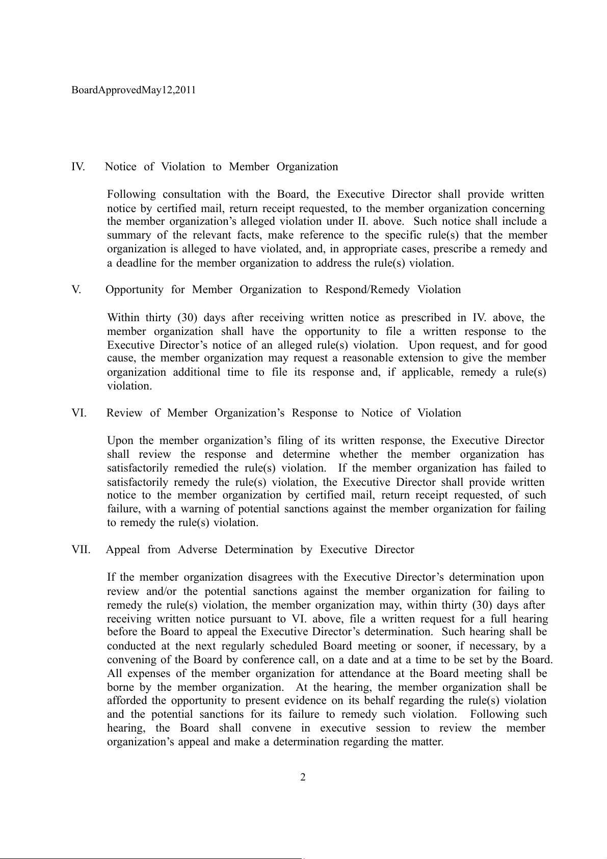 organization additional time to file its response and, if applicable, remedy a rule(s) violation. VI.
