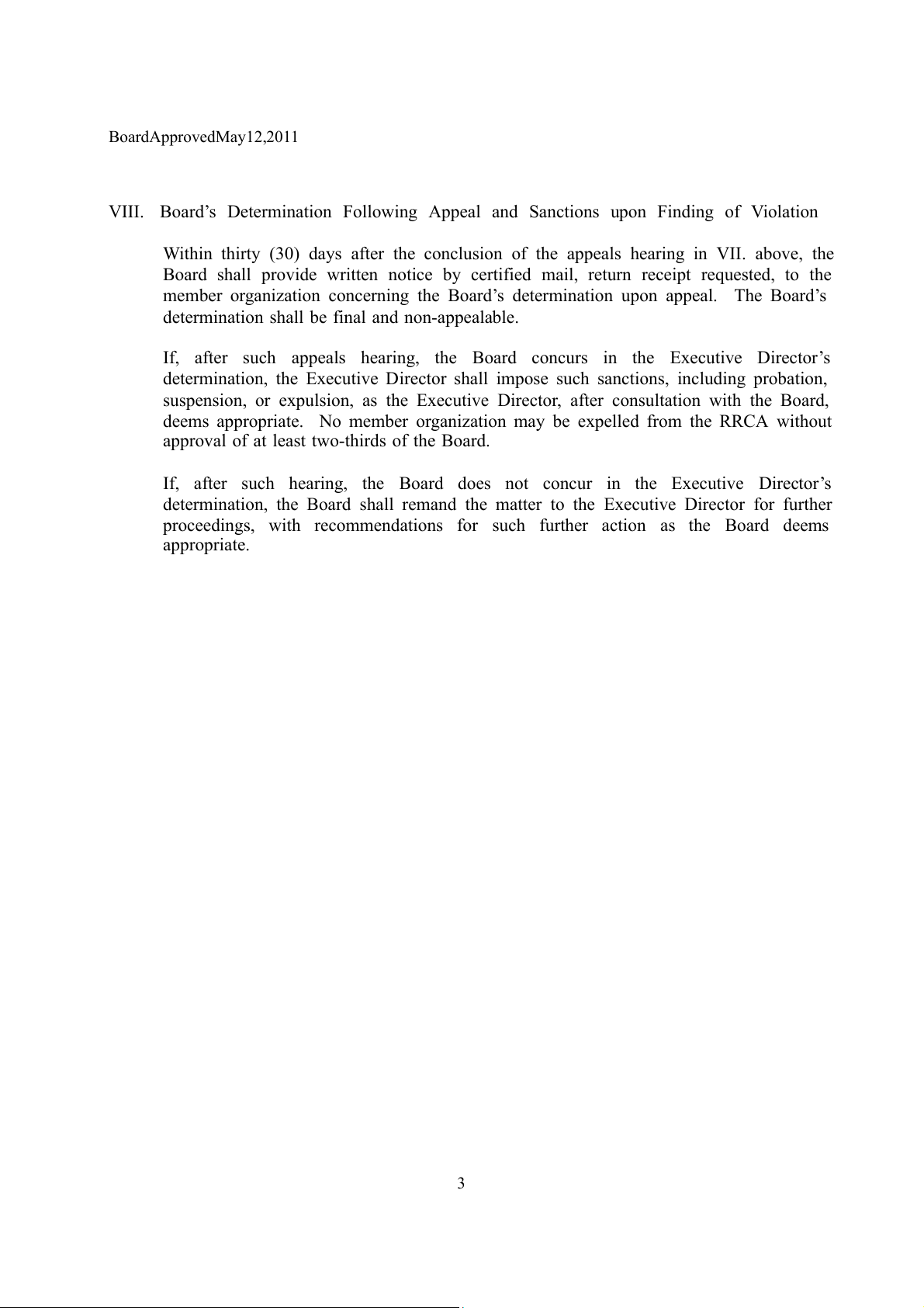 actions by a member organization that do not comply with the RRCA’s rules of governance. II.