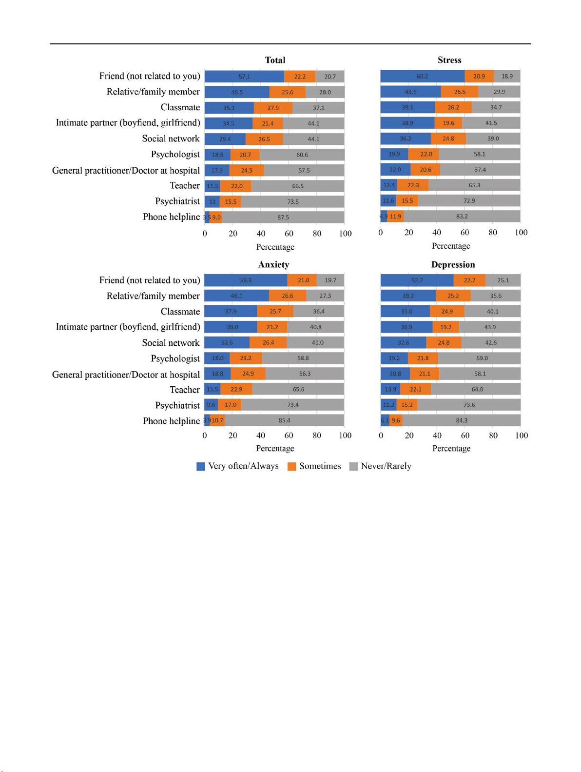 stress, depression and anxiety and moderate levels of mental health literacy, non-professionals were preferred as their first