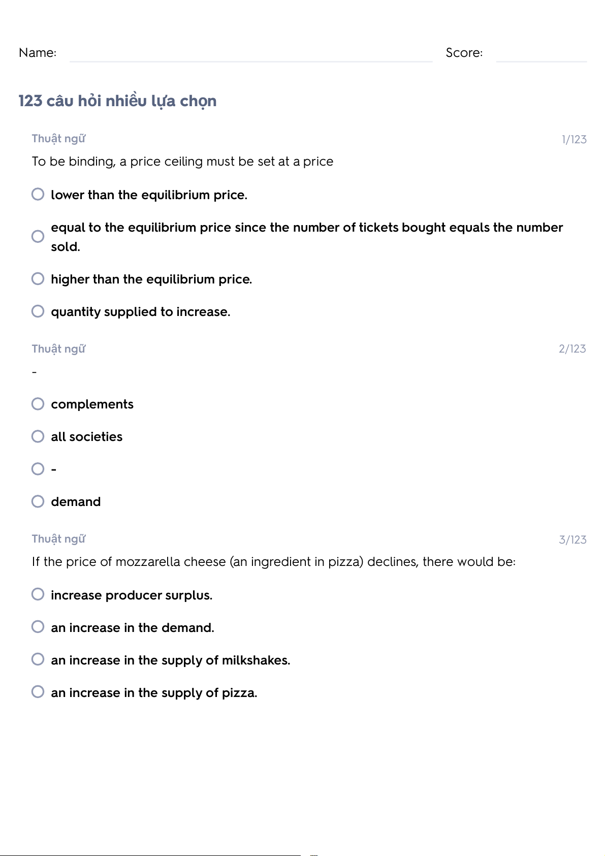 Name: Score: 123 c u h ‰ i nhi ỏ ều lựa chọn Thuật ngữ 1/123