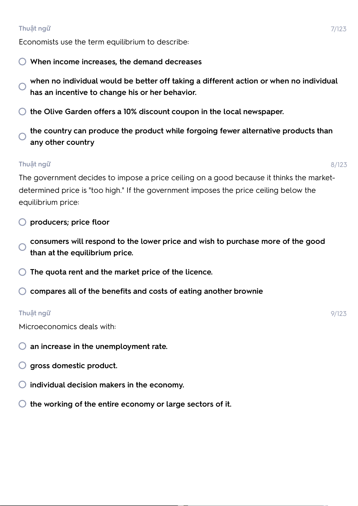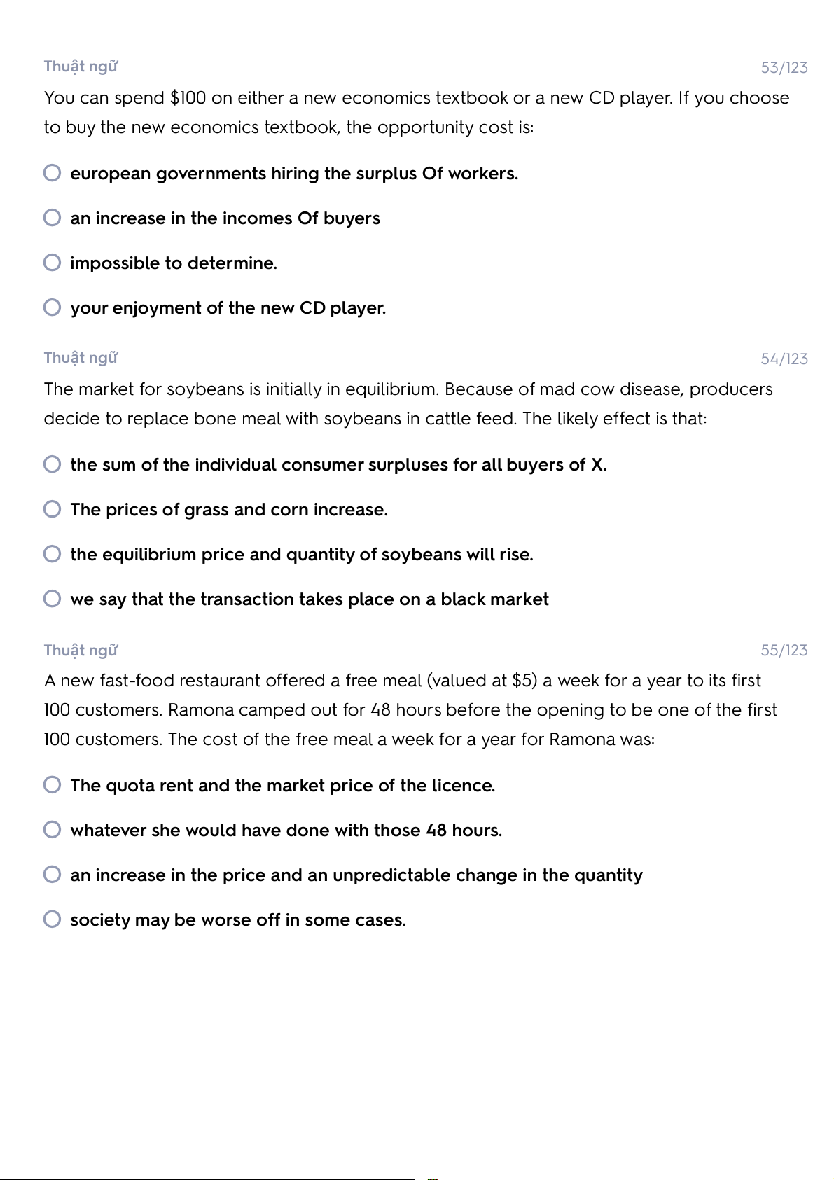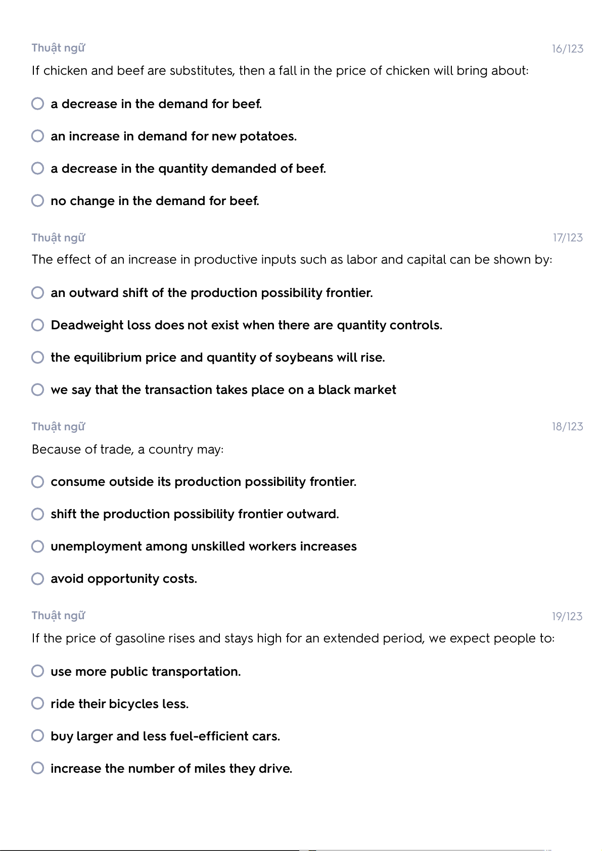 no change in the demand for beef. Thuật ngữ 17/123