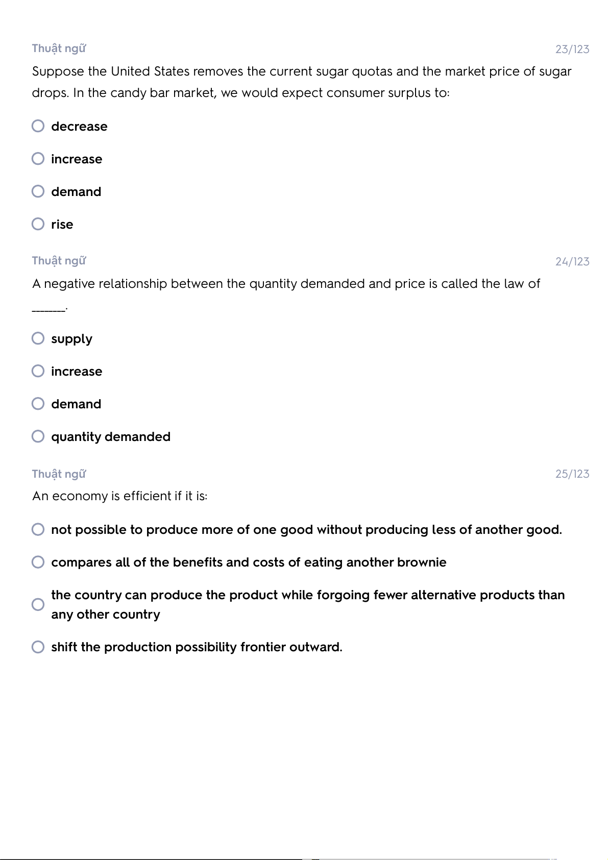 the country can produce the product while forgoing fewer alternative products than any other country an increase; a decrease Thuật ngữ 37/123