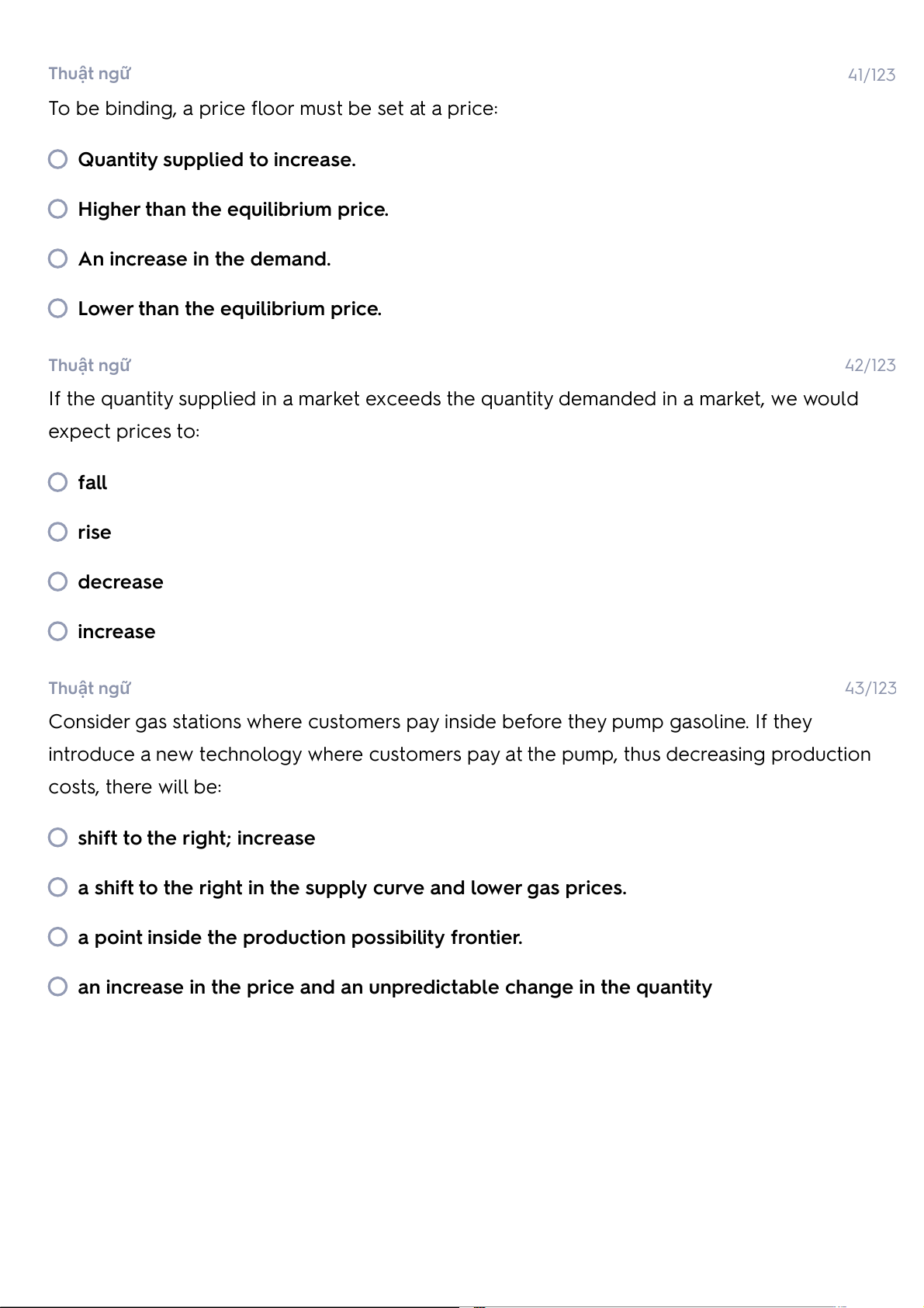 Lower than the equilibrium price. Thuật ngữ 42/123