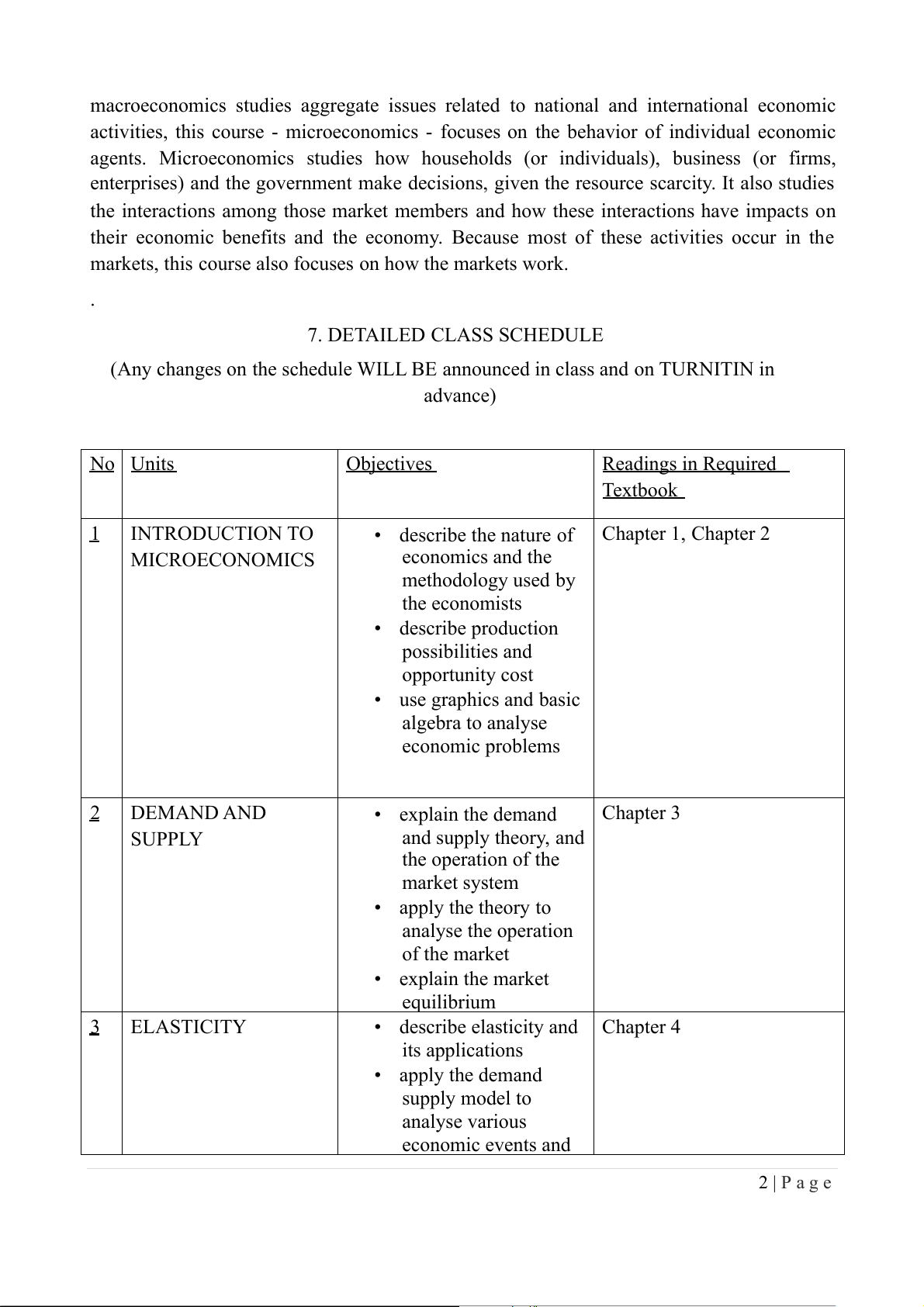 markets, this course also focuses on how the markets work. . 7. DETAILED CLASS SCHEDULE