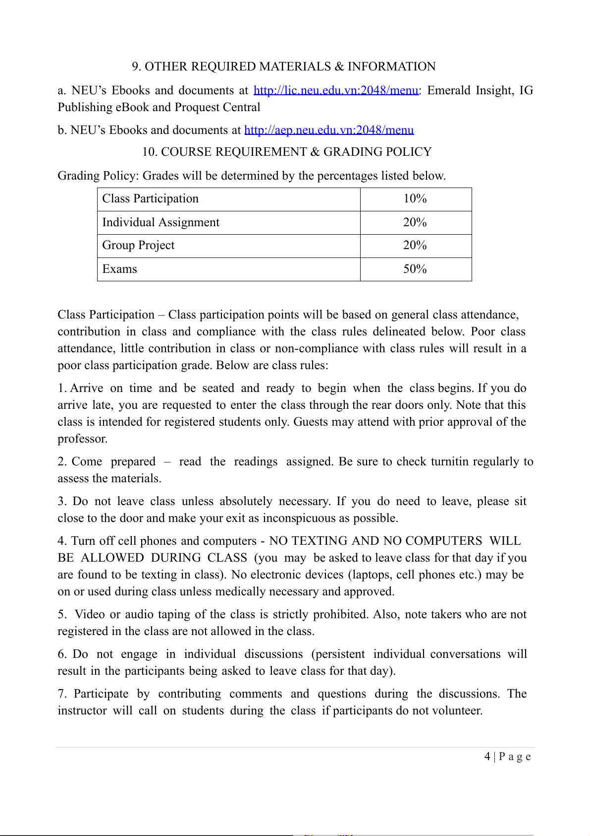 10. COURSE REQUIREMENT & GRADING POLICY