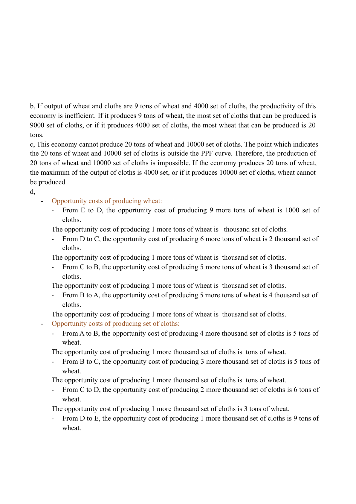 the maximum of the output of cloths is 4000 set, or if it produces 10000 set of cloths, wheat cannot be produced. d, -
