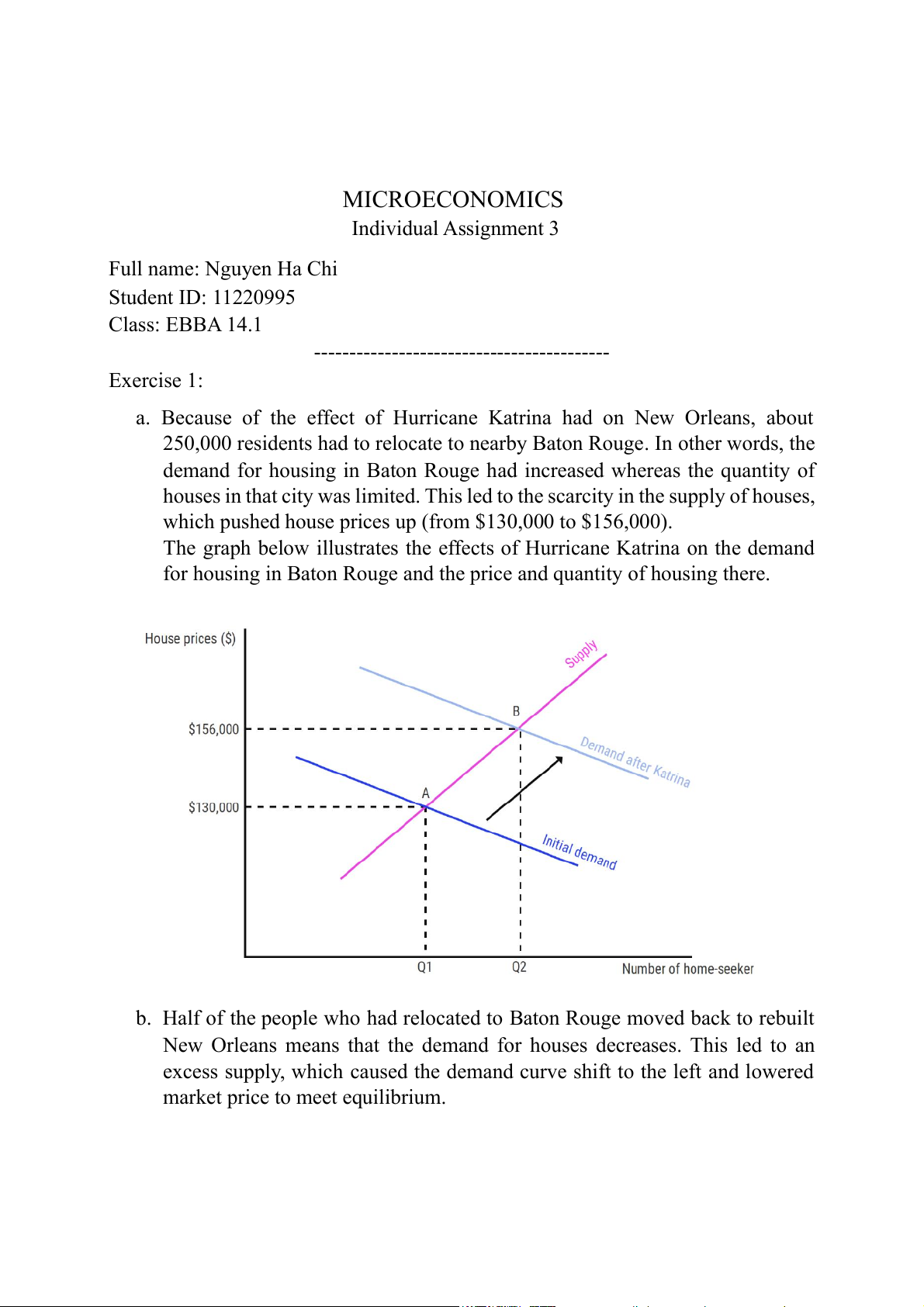 MICROECONOMICS Individual Assignment 3 Full name: Nguyen Ha Chi Student ID: 11220995 Class: EBBA 14.1