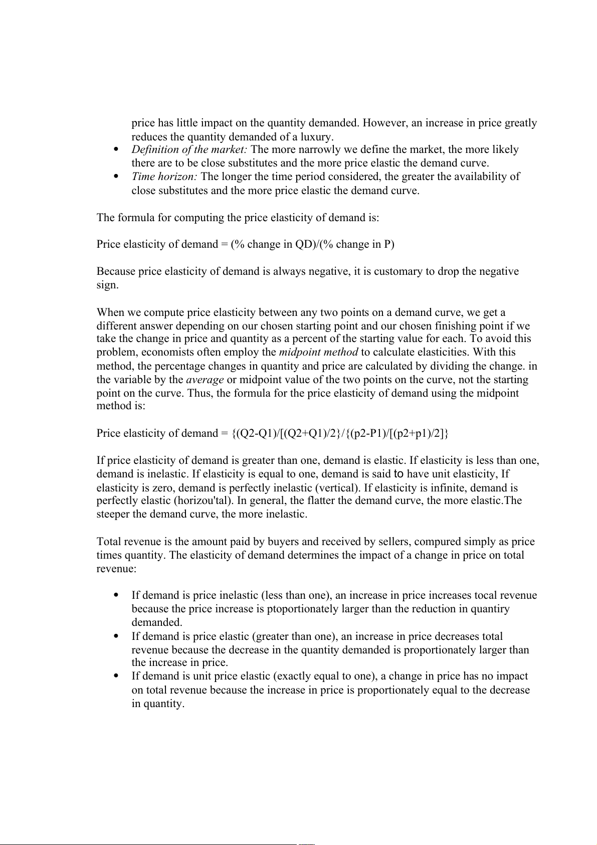 a change in price. Generally, the shorter the time period considered, the less flexibility the